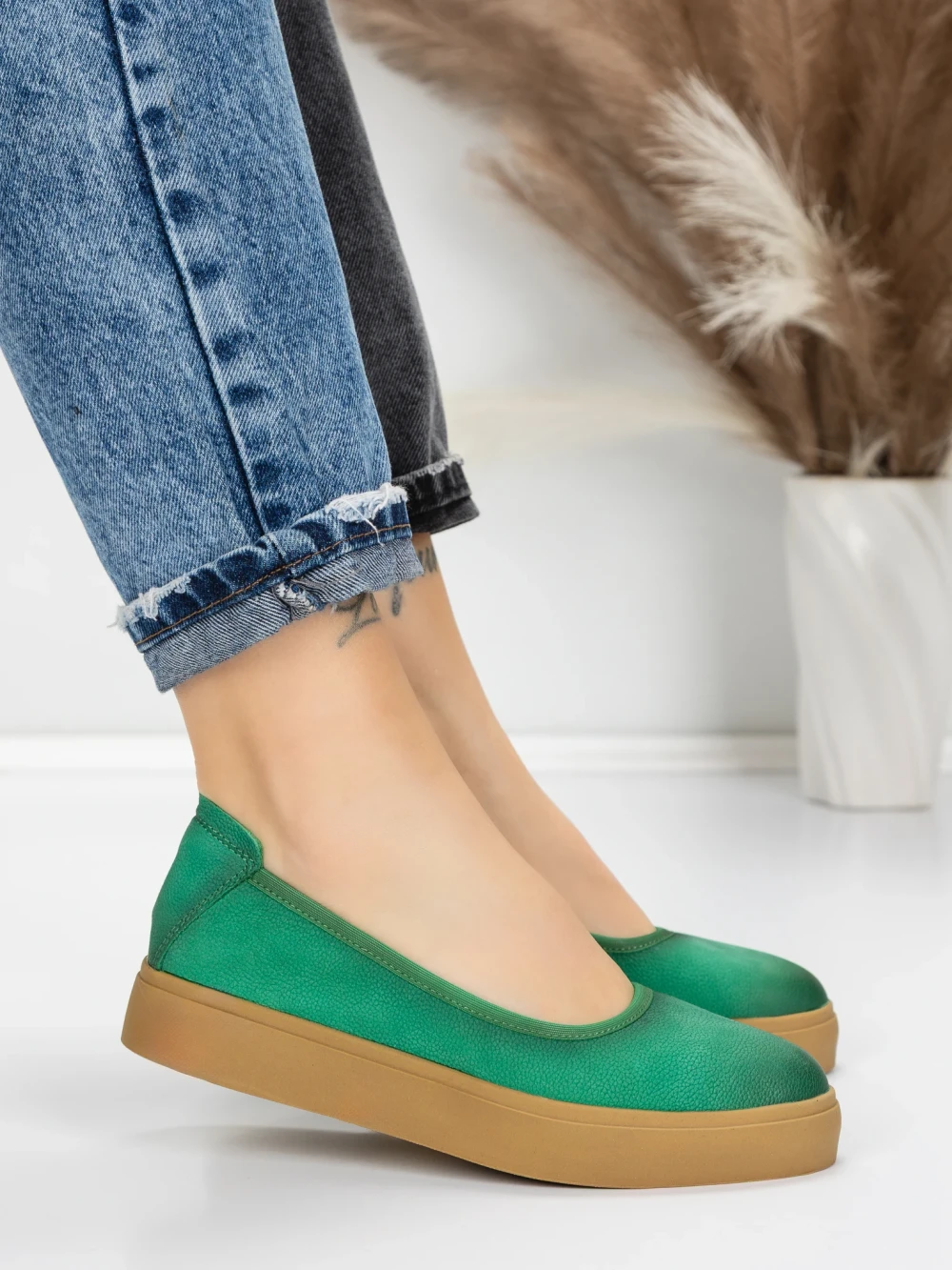 дамски балерини от естествена кожа N3301 Зелено | Advancer