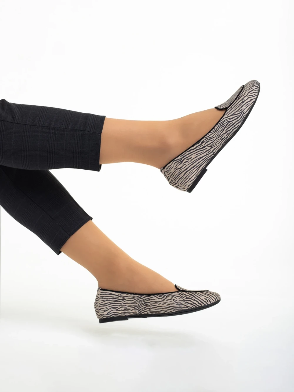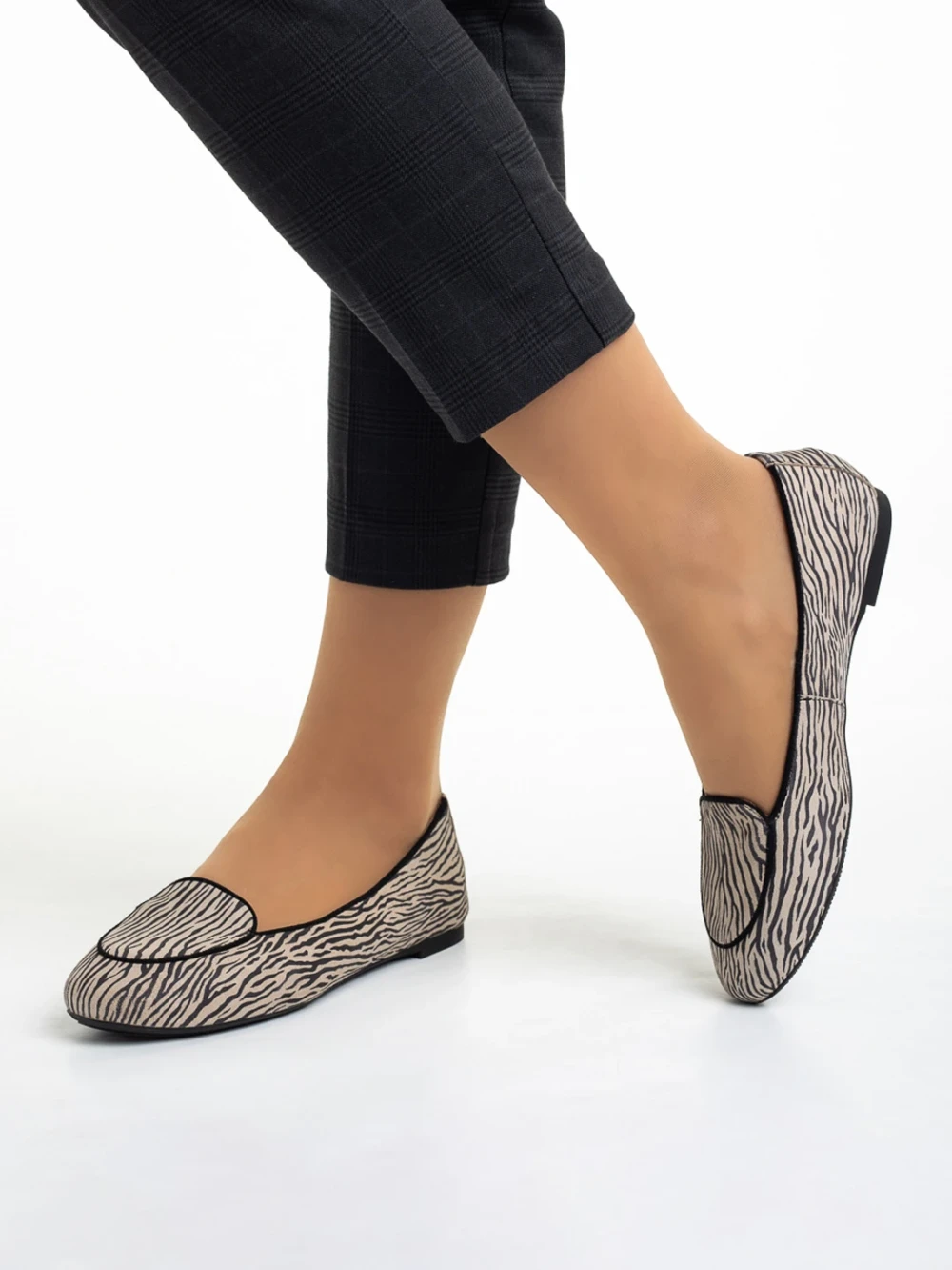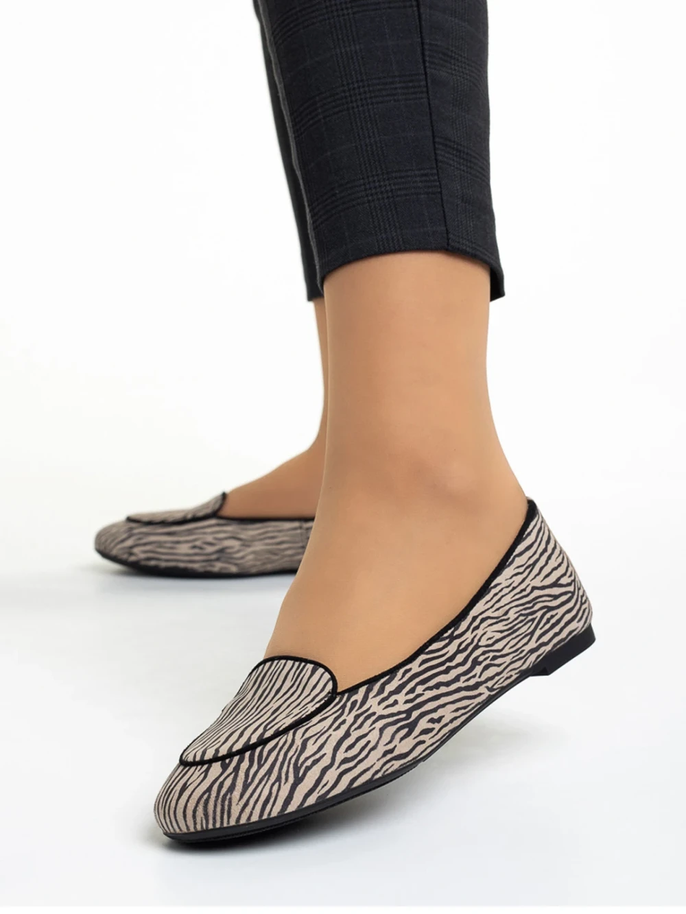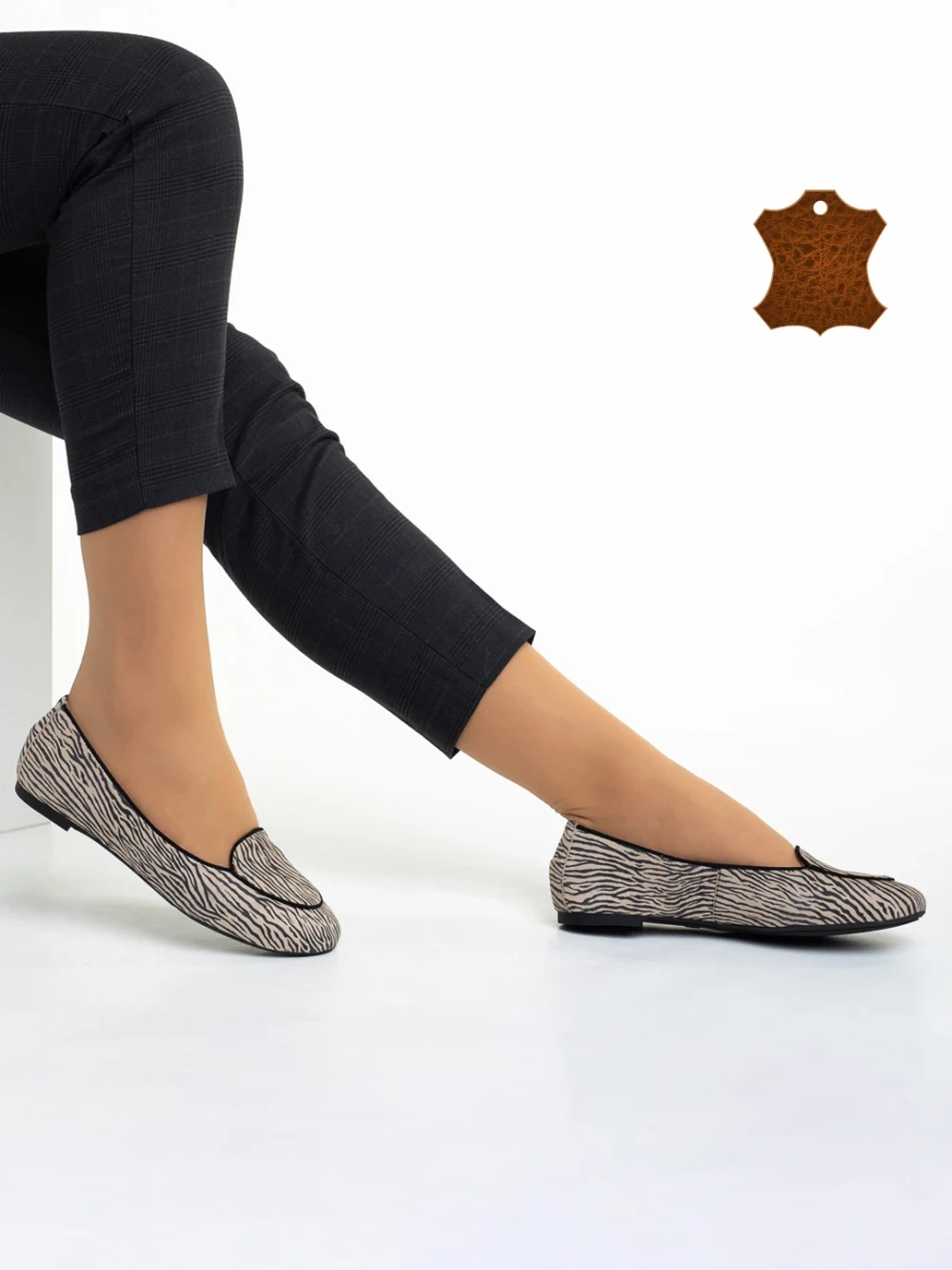 Дамски балерини Marco бежови с черно от естествена кожа Marnie