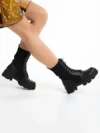 Дамски боти  черни  от еко кожа и текстилен материал  Giana