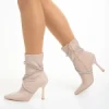 Дамски боти бежови от текстилен материал Alaina