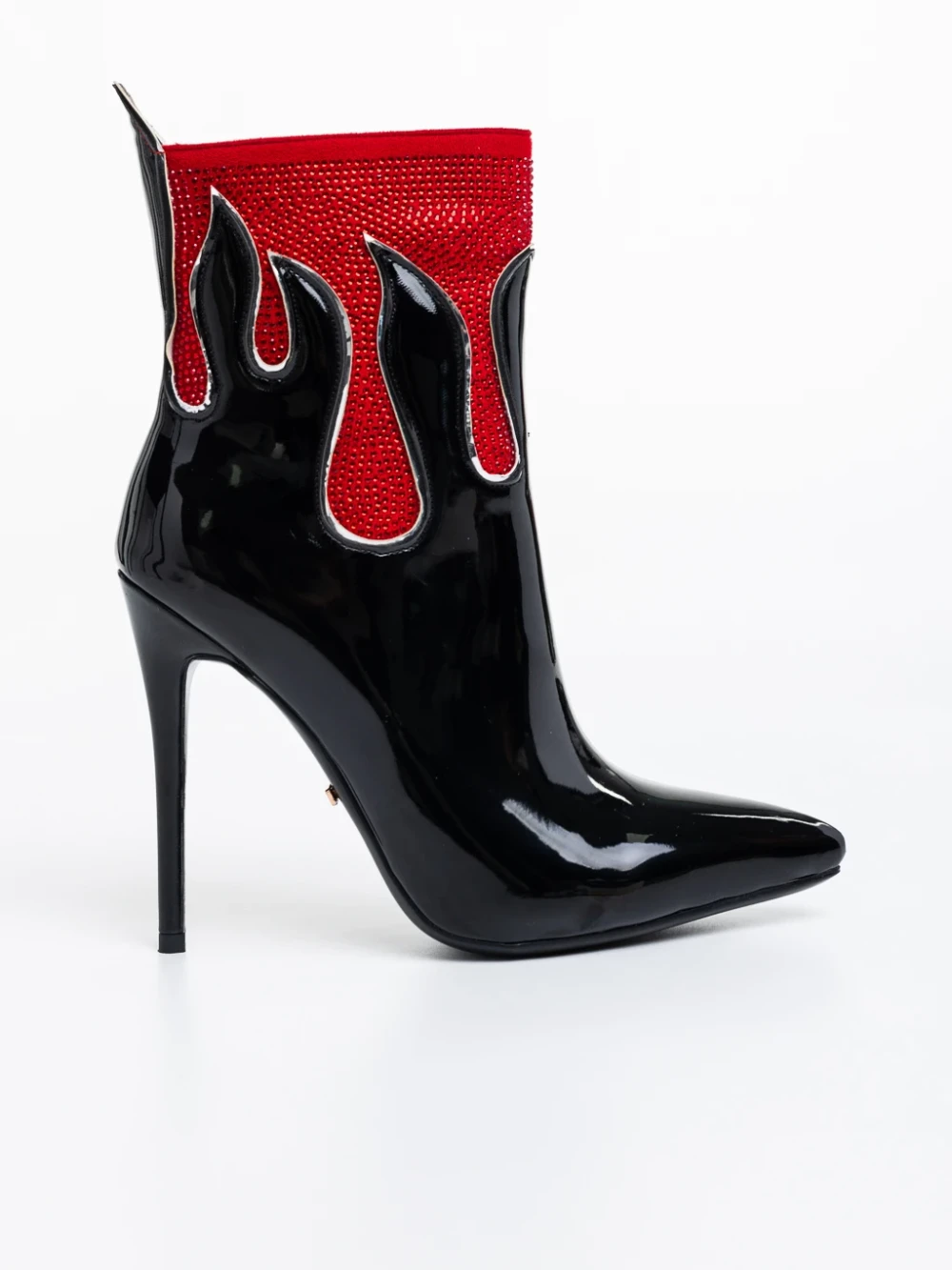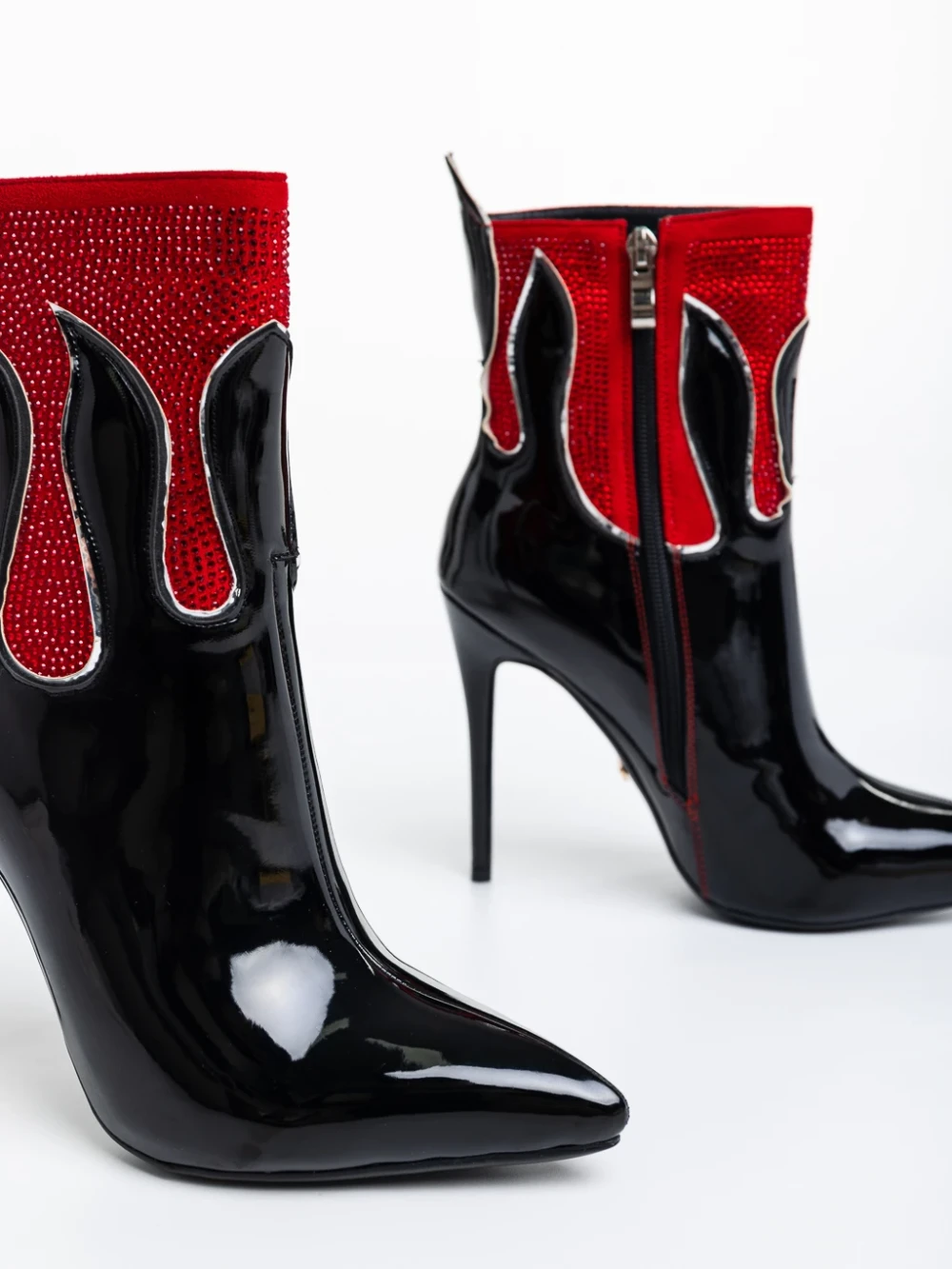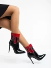 Дамски боти черни с червено от еко кожа лачена Kristena