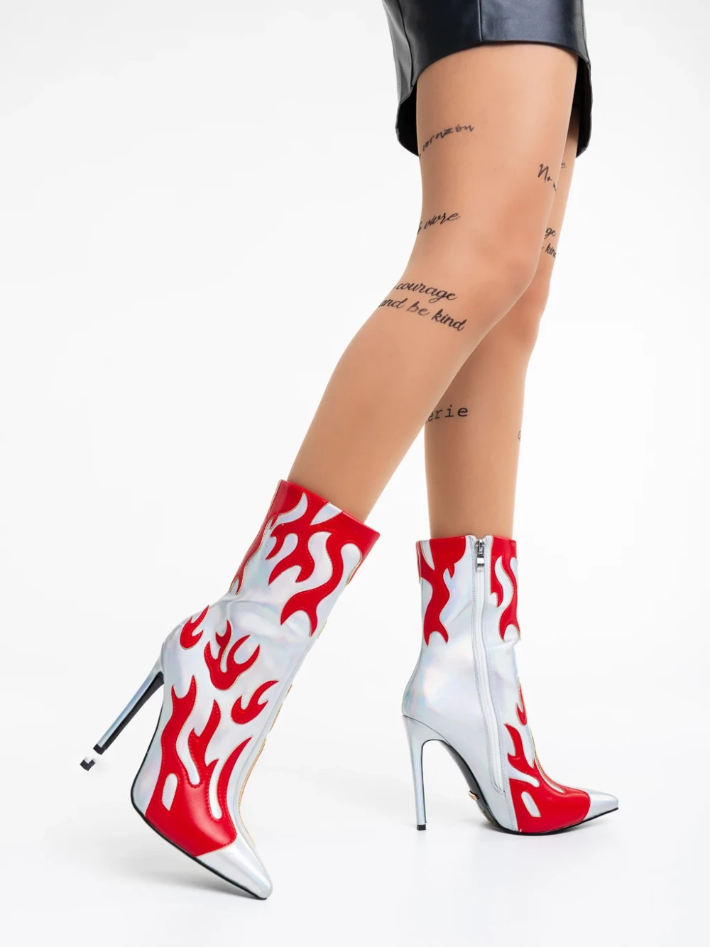 Дамски боти черни с червено от еко кожа лачена Kristena