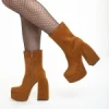 Дамски боти камел от текстилен материал с ток Edie Информация за продукта