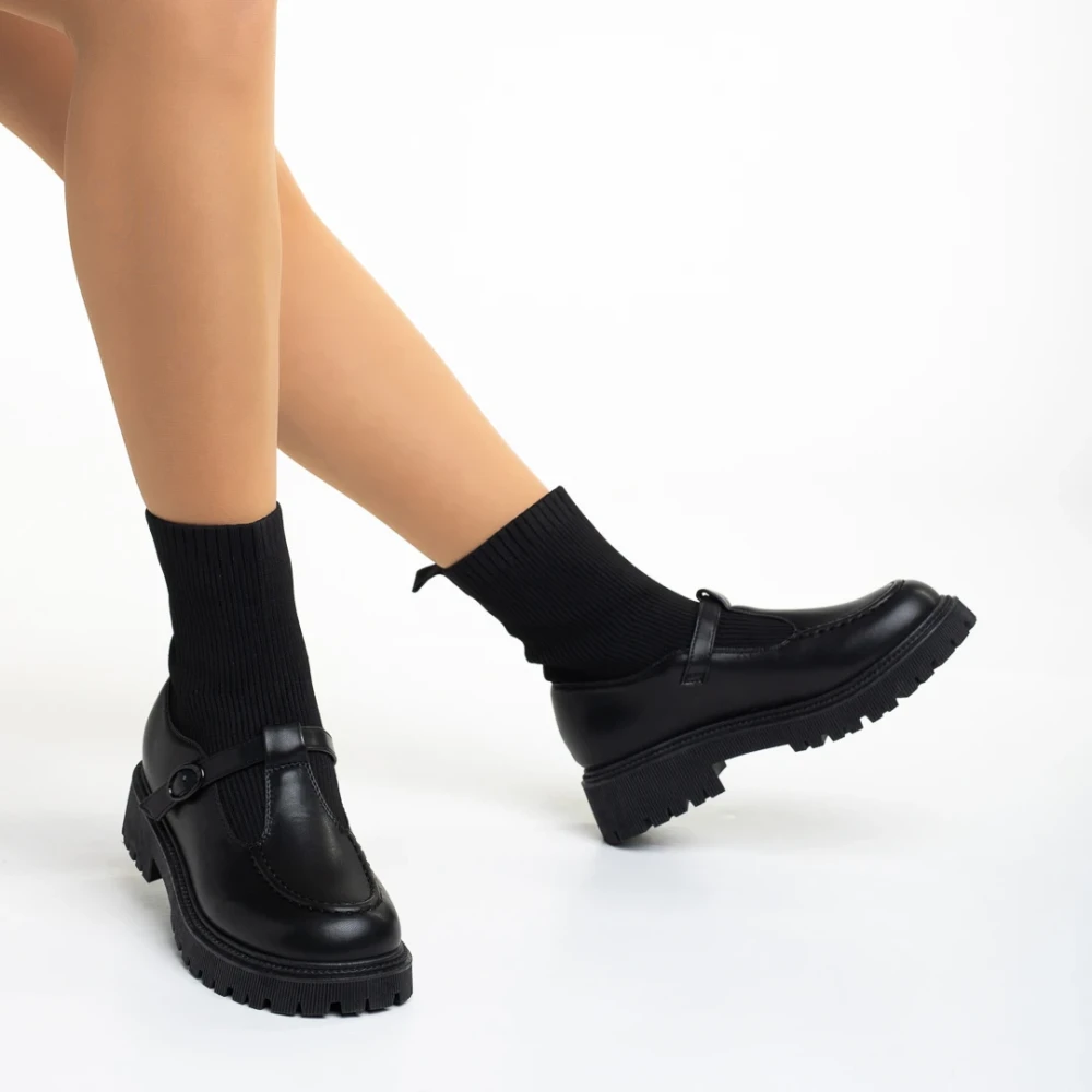 обувки с ток от естествена кожа TP312-1 Черен | Advancer