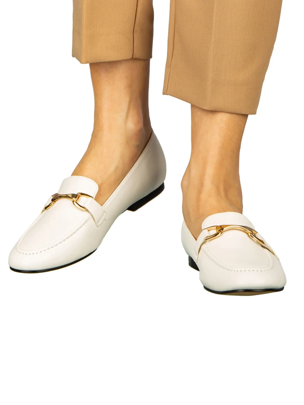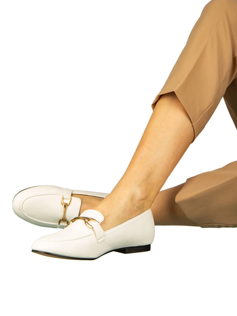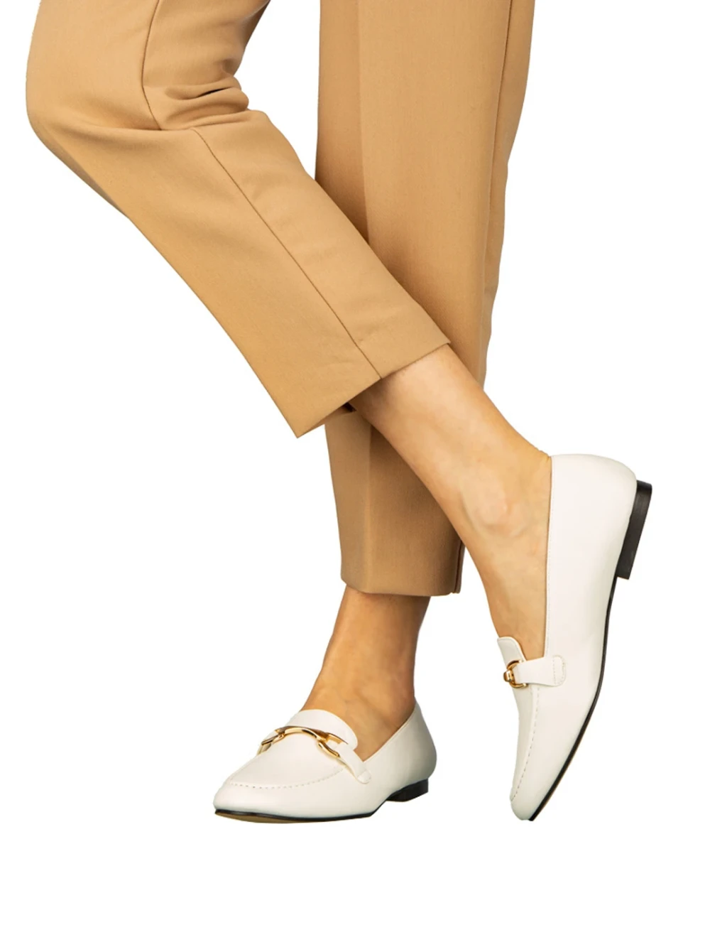 Дамски мокасини бели от екологична лачена кожа Zeria