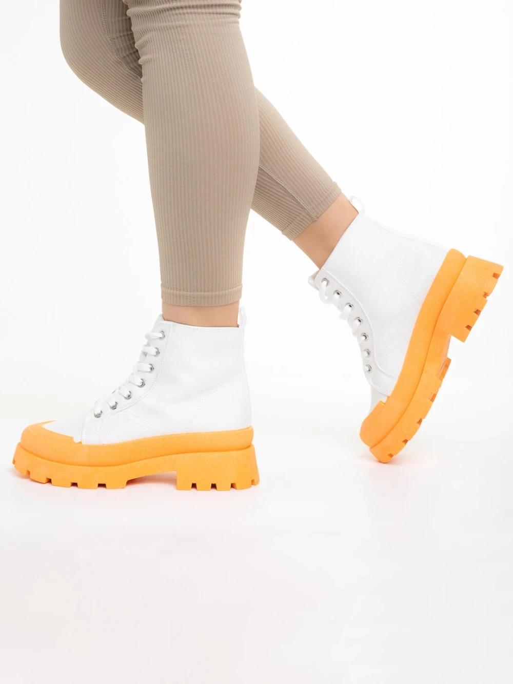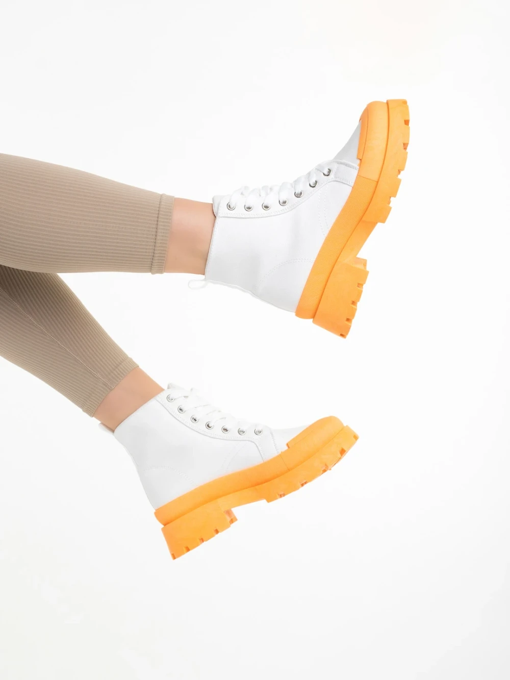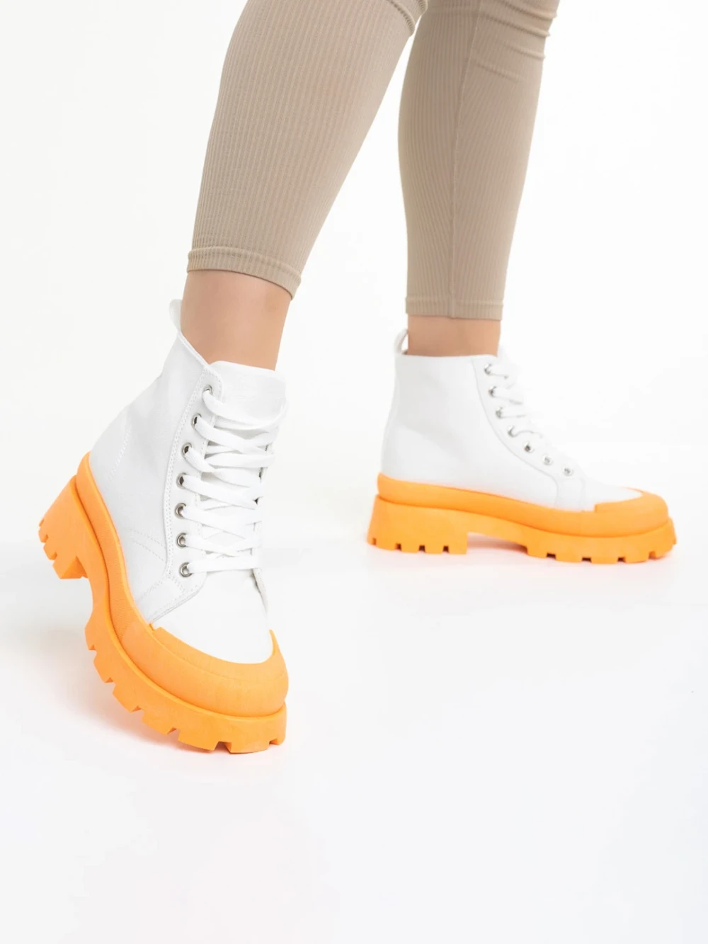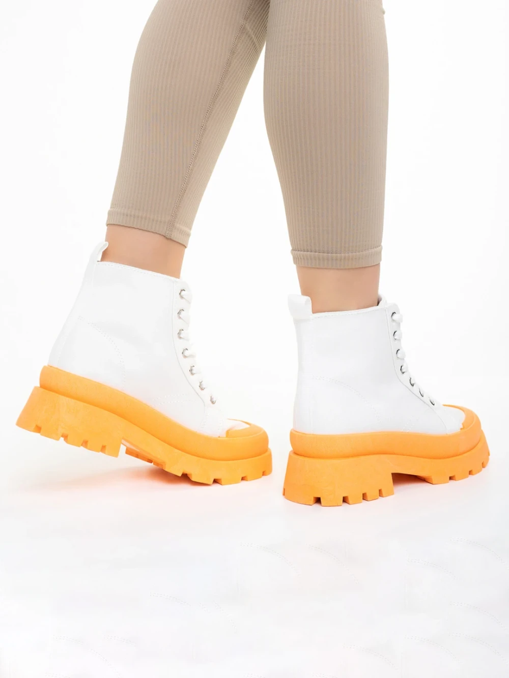 Дамски кецове бели с оранжево от текстилен материал Vanisha