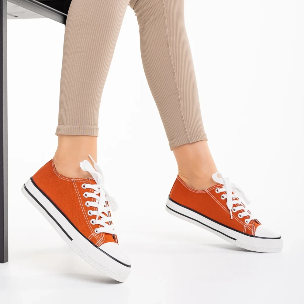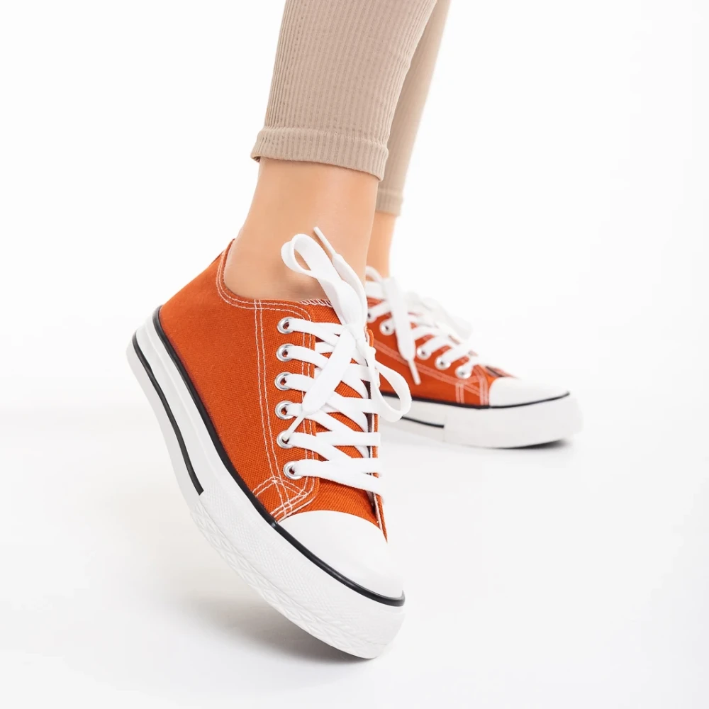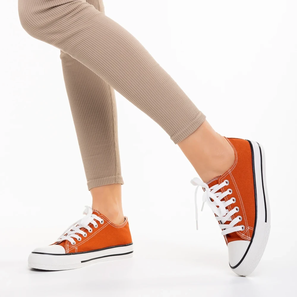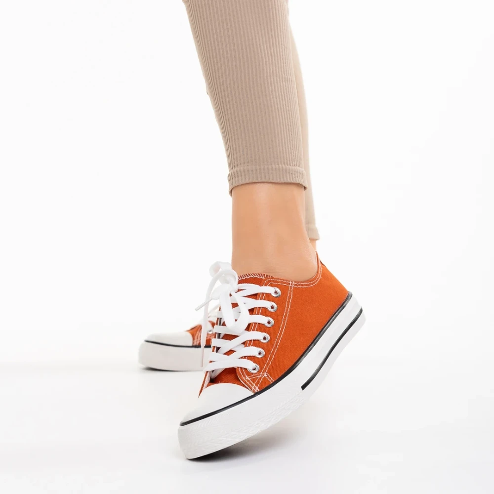 Дамски кецове тъмно ореанжеви от текстилен материал Selima