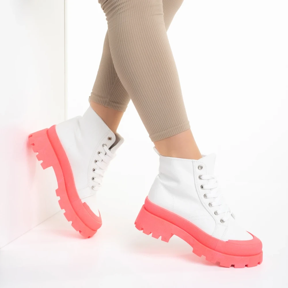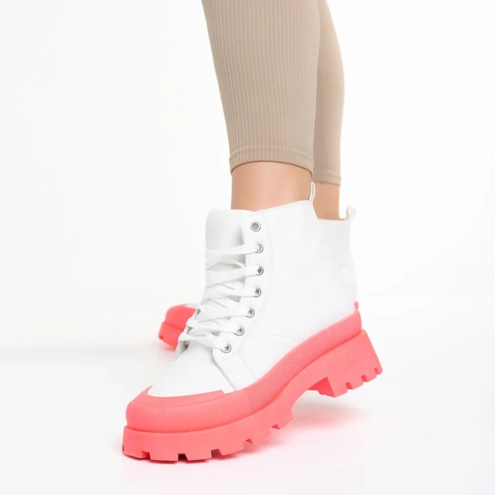 Дамски кецове бели с цикламено от текстилен материал Vanisha
