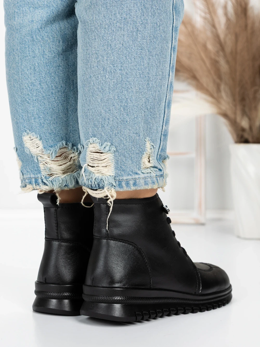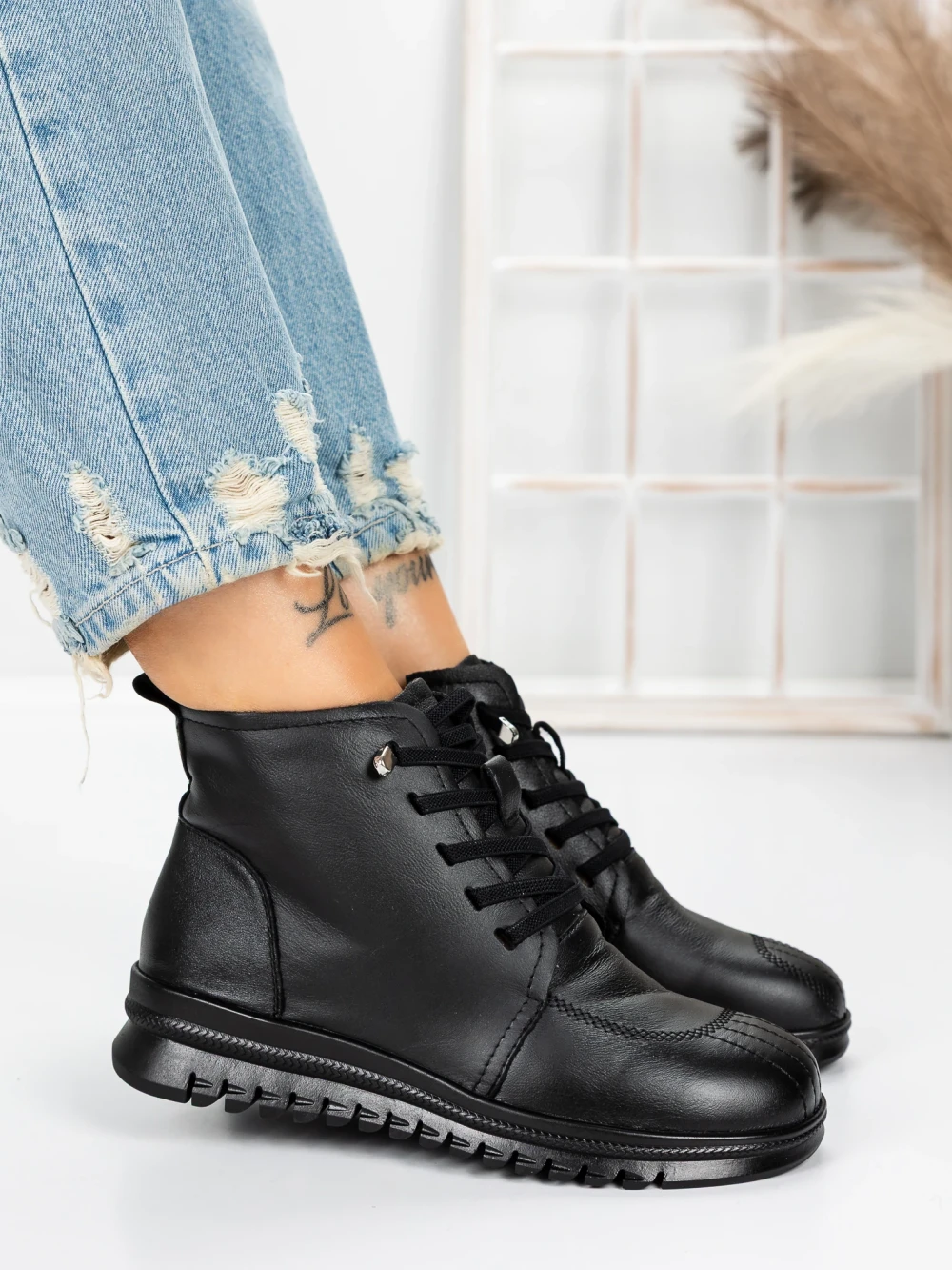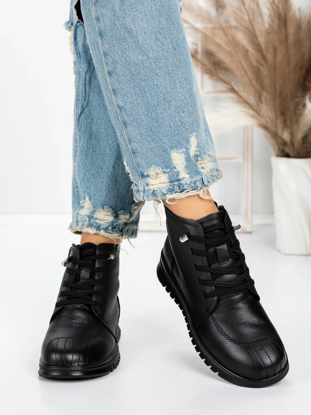 Дамски боти от естествена кожа 5W50 Черен | Pantoful