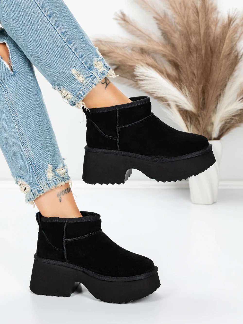 Дамски боти от естествена кожа 5W50 Черен | Pantoful