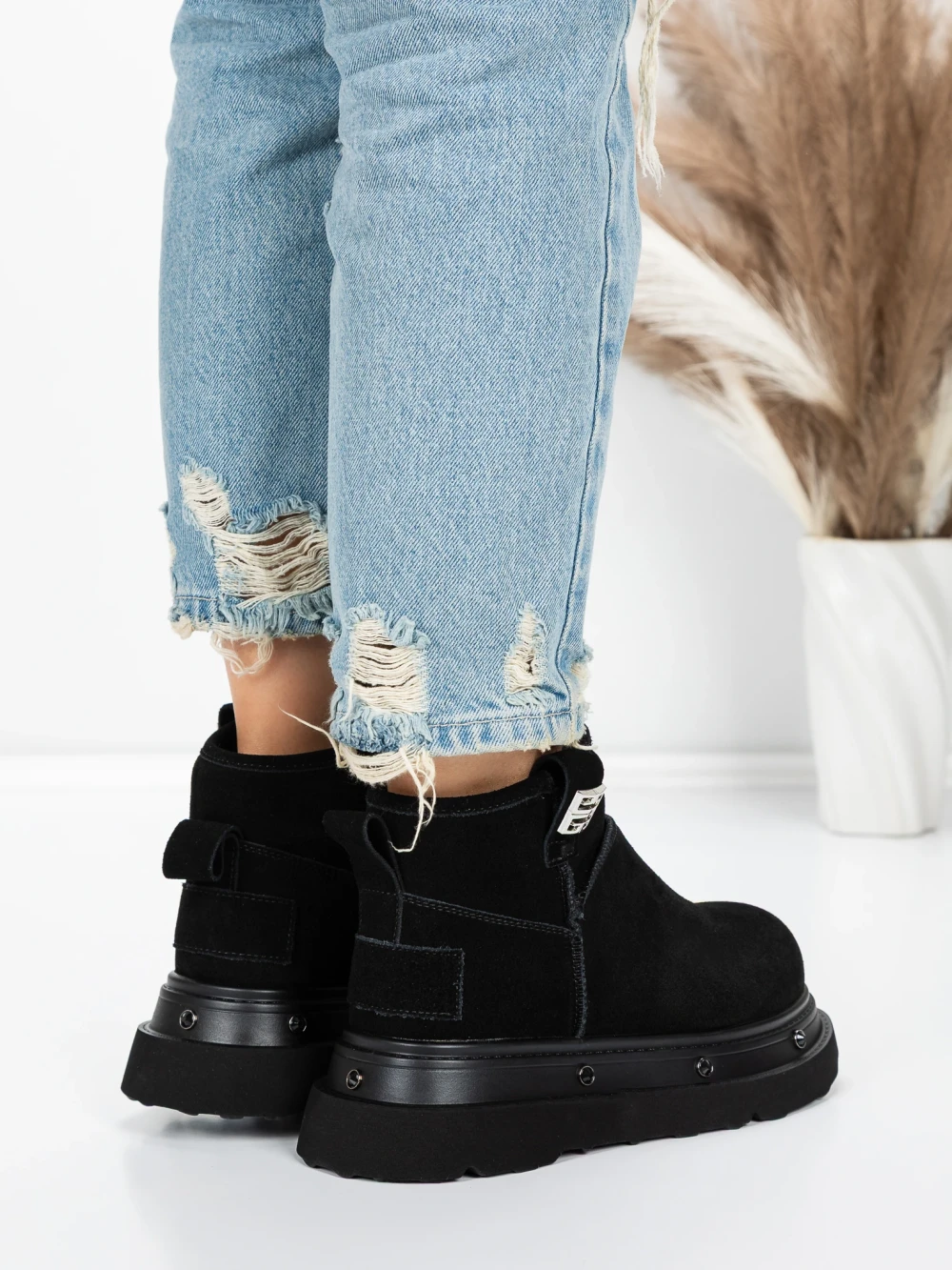Дамски боти от естествена кожа 5W76 Черен | Pantoful