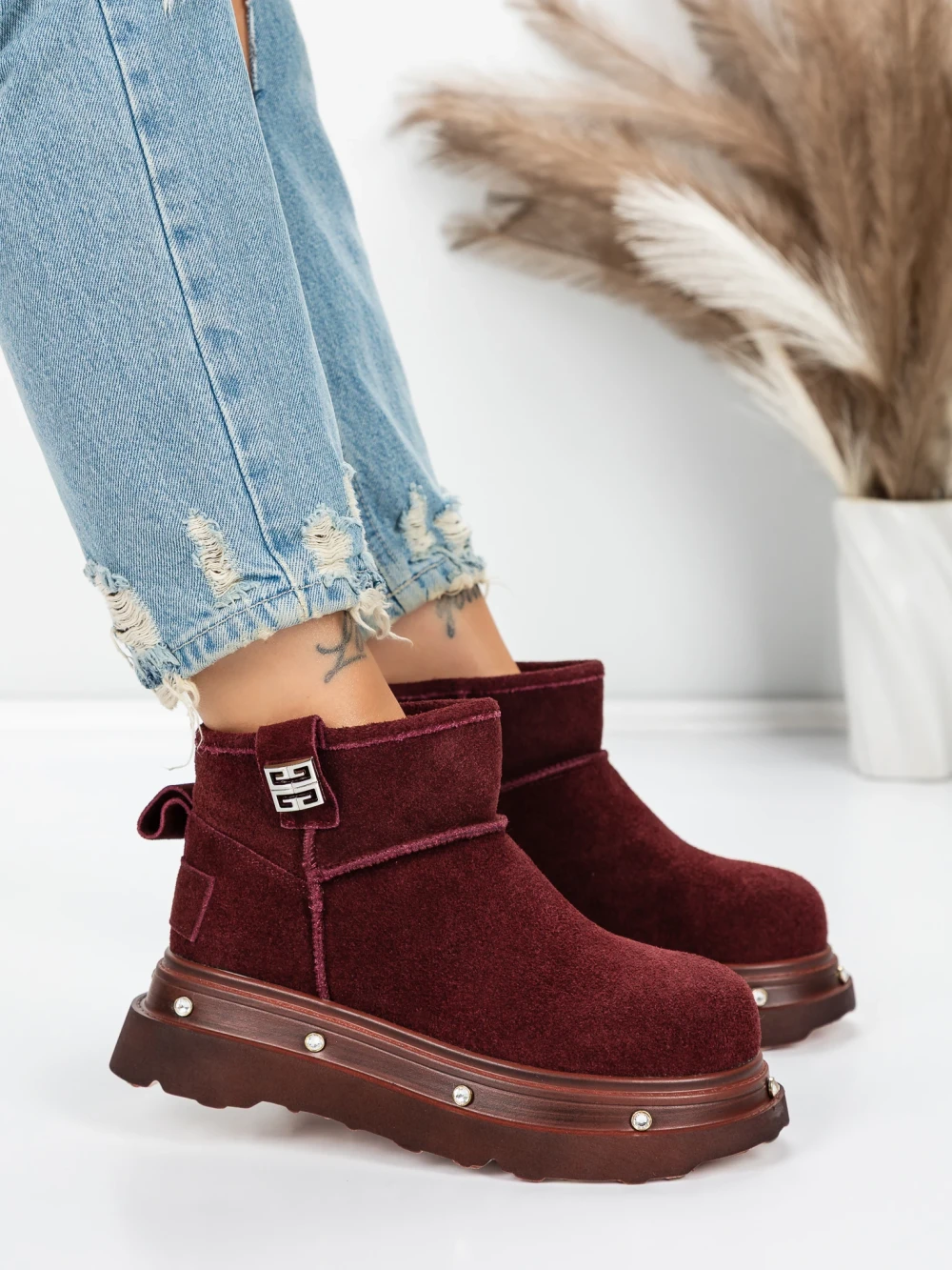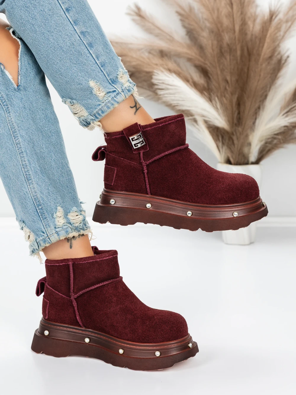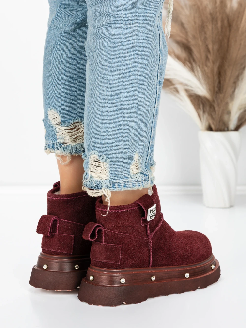 В MeiMall можете да намерите Дамски боти от естествена кожа 58W28 бордо | Pantoful. Живият бордо цвят, съчетан с качествени материали и модерен дизайн, ще Ви впечатли! MeiMall е онлайн магазин, който предлага широка гама от продукти за жени, мъже и деца. Тук можете да намерите обувки, дрехи, чанти и аксесоари. Доставката е бърза, а срокът за връщане е 14 дни.