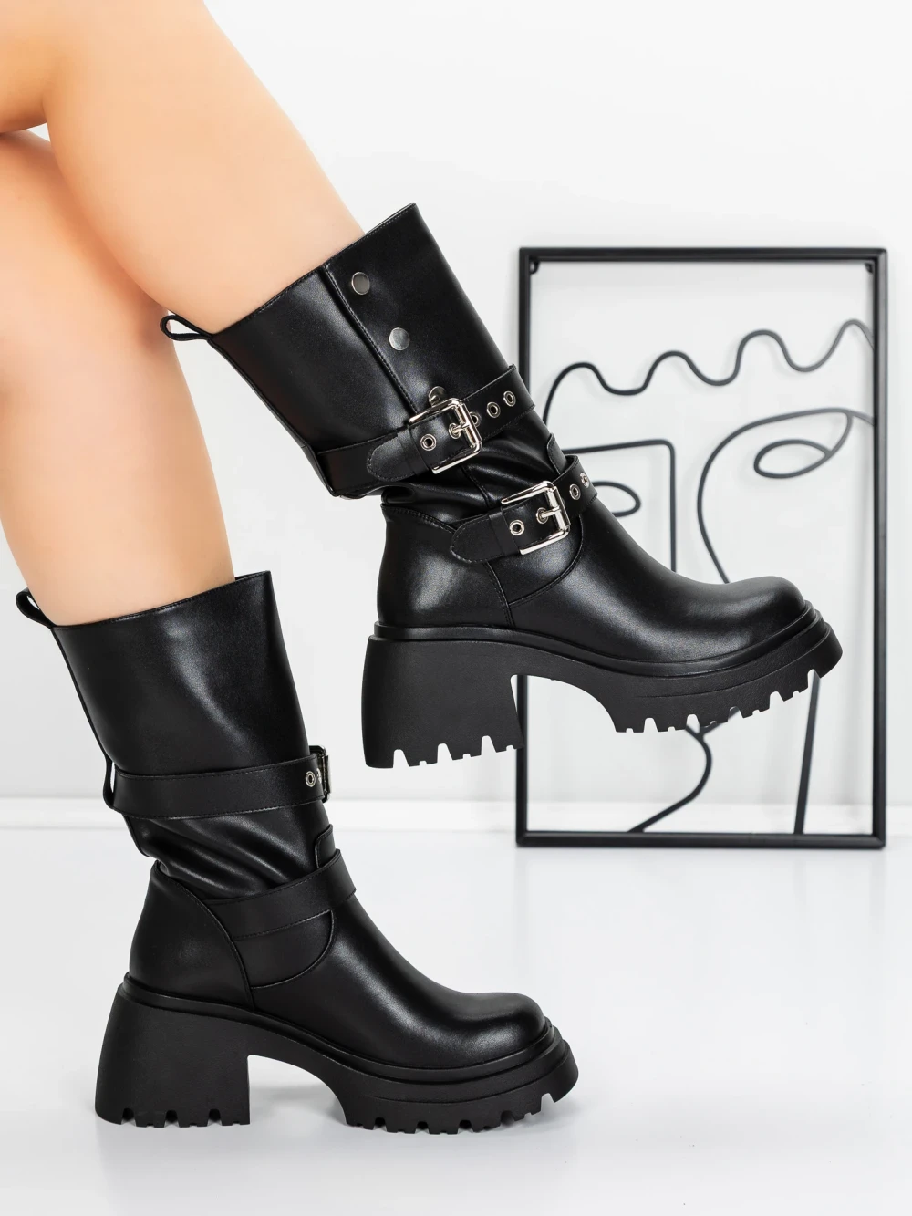 Ghete Dama din piele naturala 52AD11 BLACK | PANTOFUL
