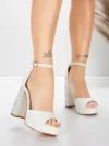 Дамски сандали с тънък ток и платформа 3DC58 Бял | Mei
