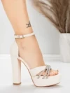 Дамски сандали с тънък ток и платформа 2XKK570 Бежово (K23) Mei