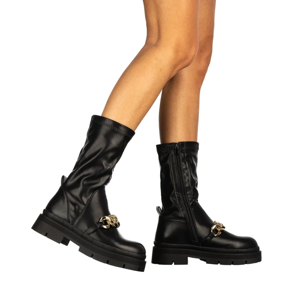 Дамски чизми бежови тъмно от текстилен материал Zurine