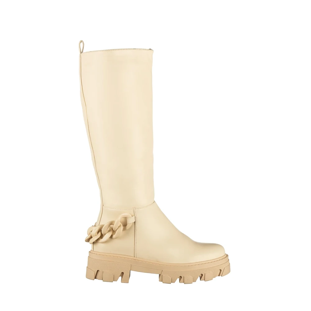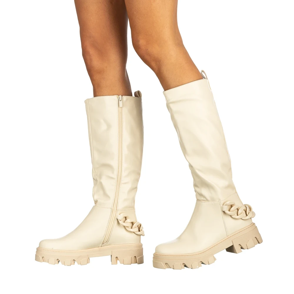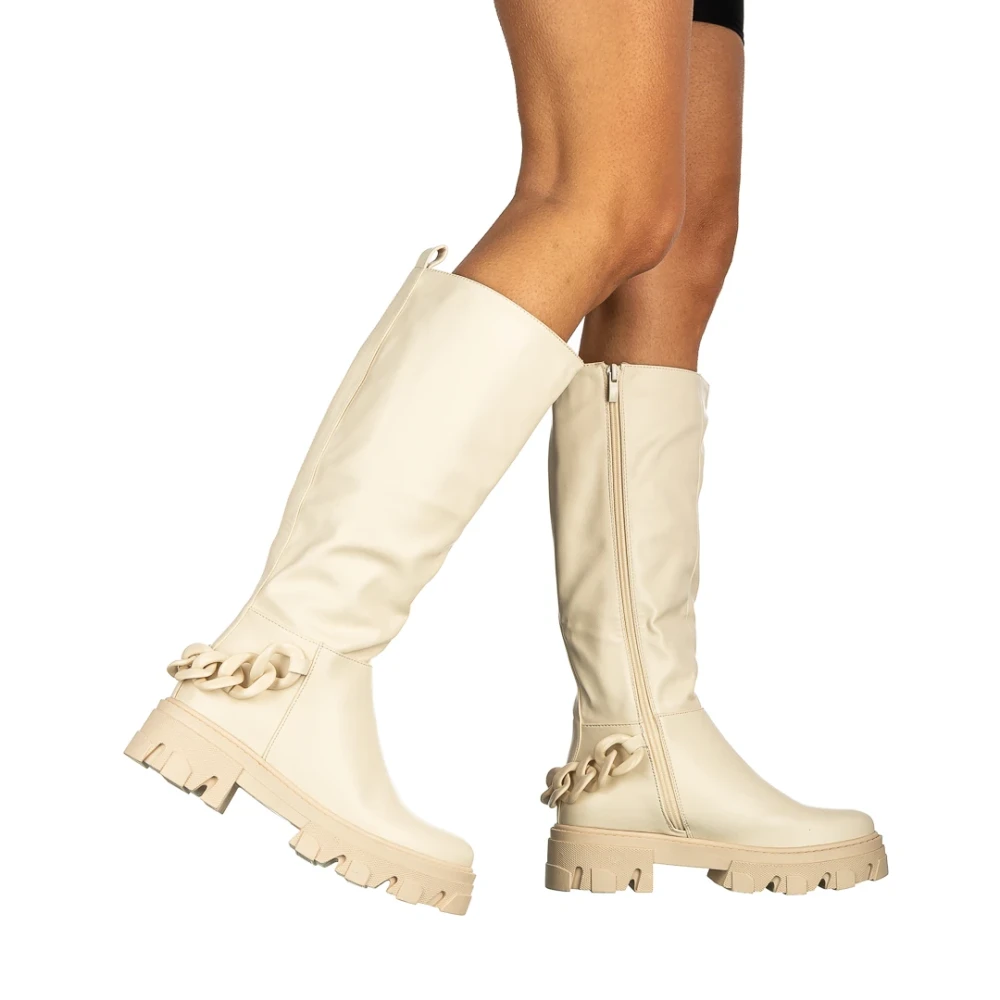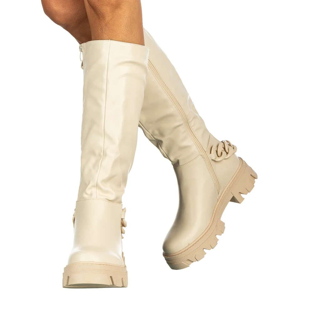 Дамски чизми бежови от еко кожа и текстилен материал Delyth