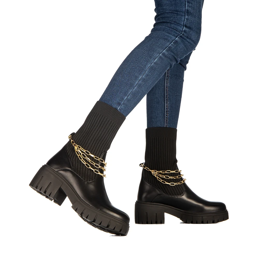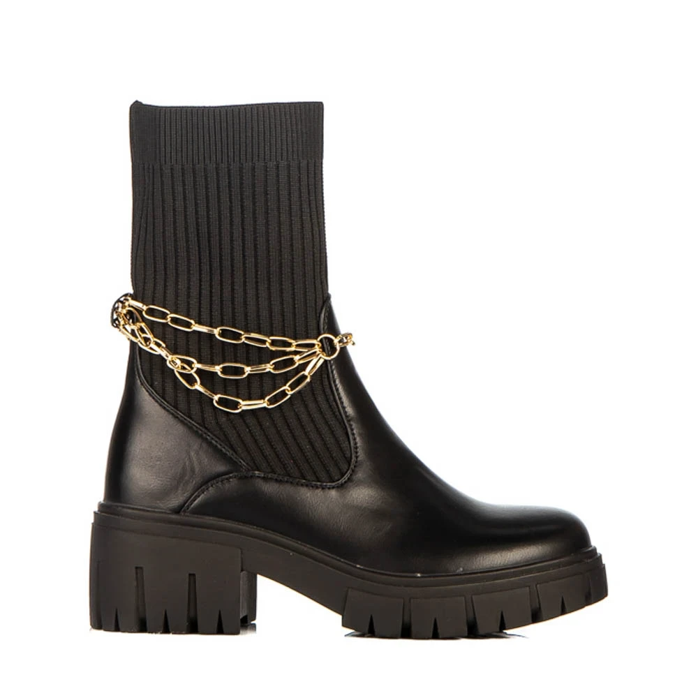 Дамски чизми черни от екологична кожа и текстилен материал Nicova