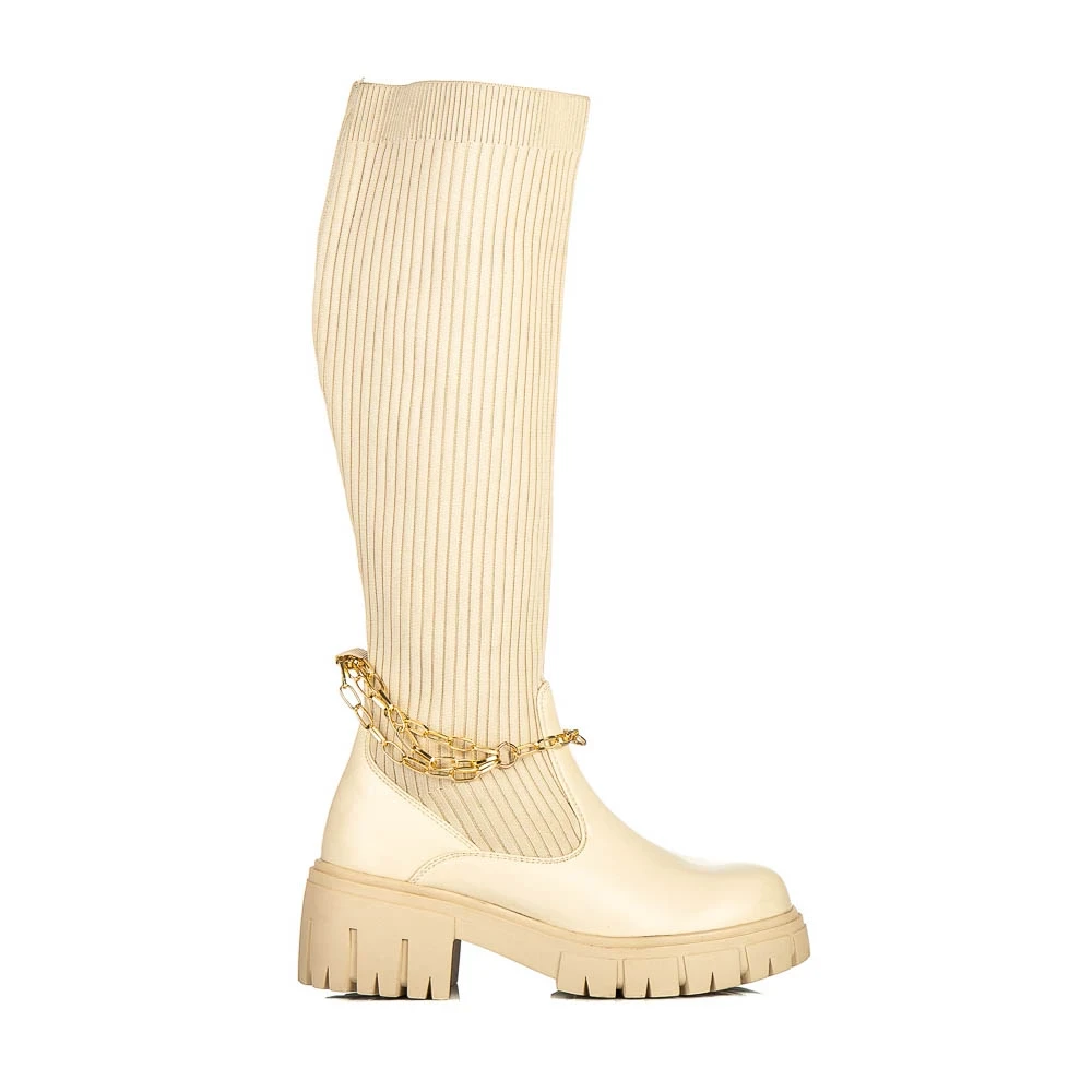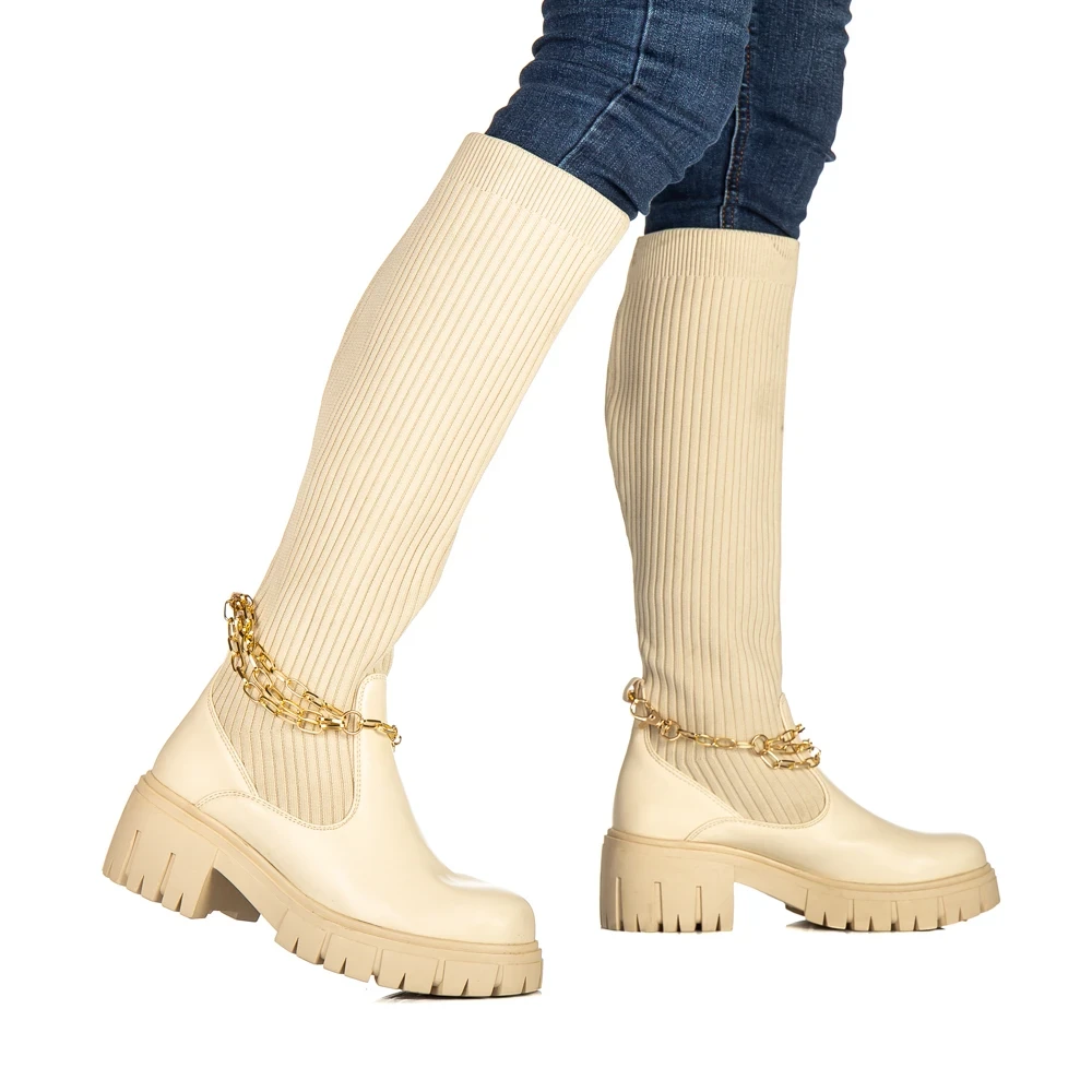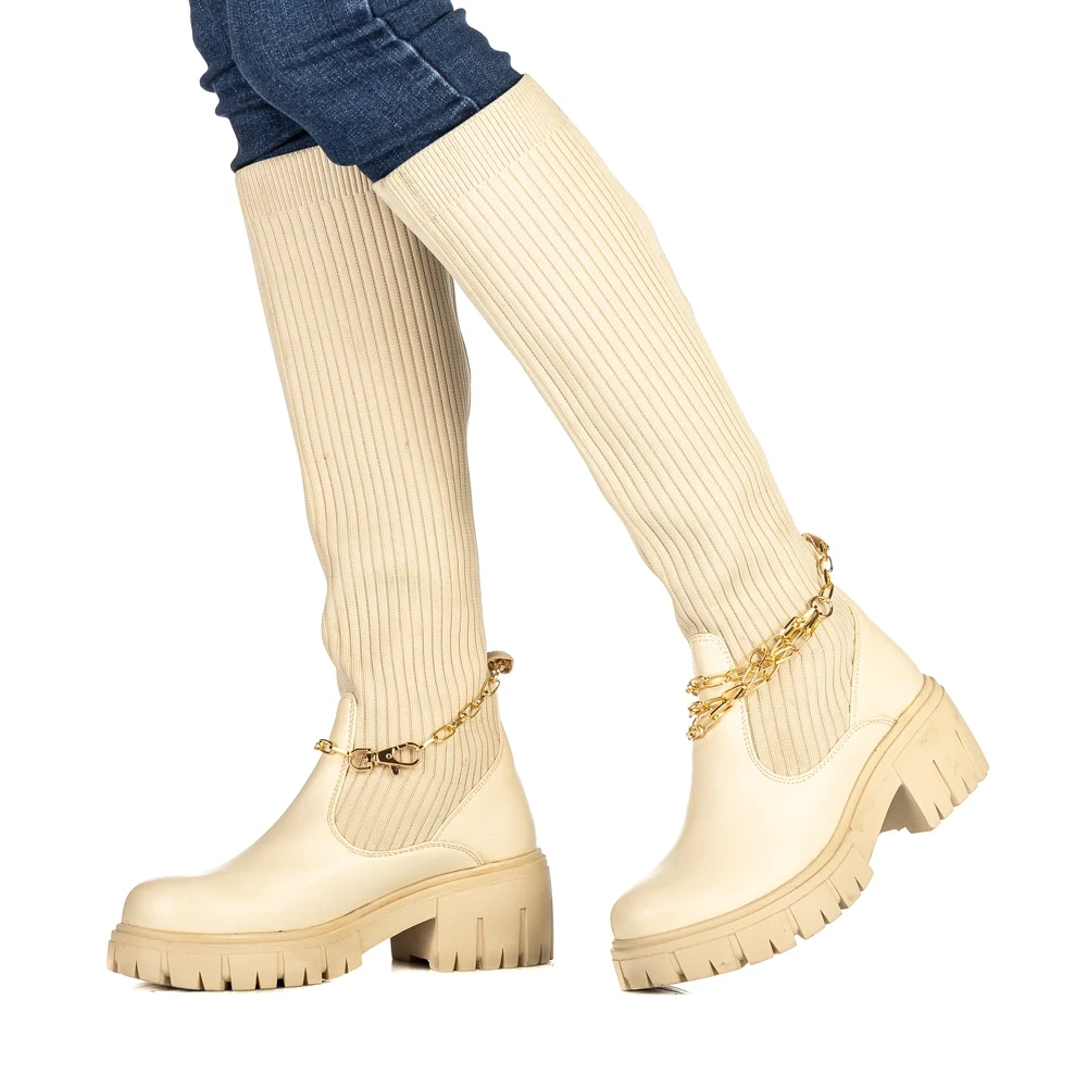 Дамски чизми бежови от текстилен материал Tayte