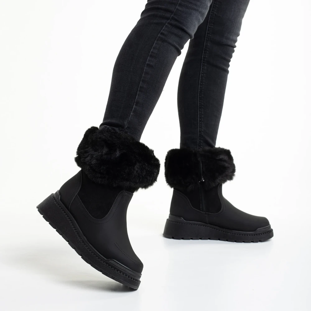 Дамски чизми черни от еко кожа и текстилен материал Ramata