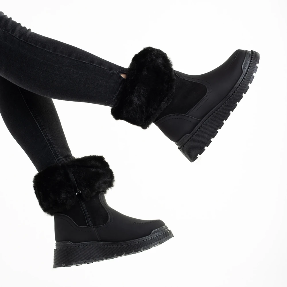 Дамски чизми черни  от еко кожа и текстилен материал  Aubrielle