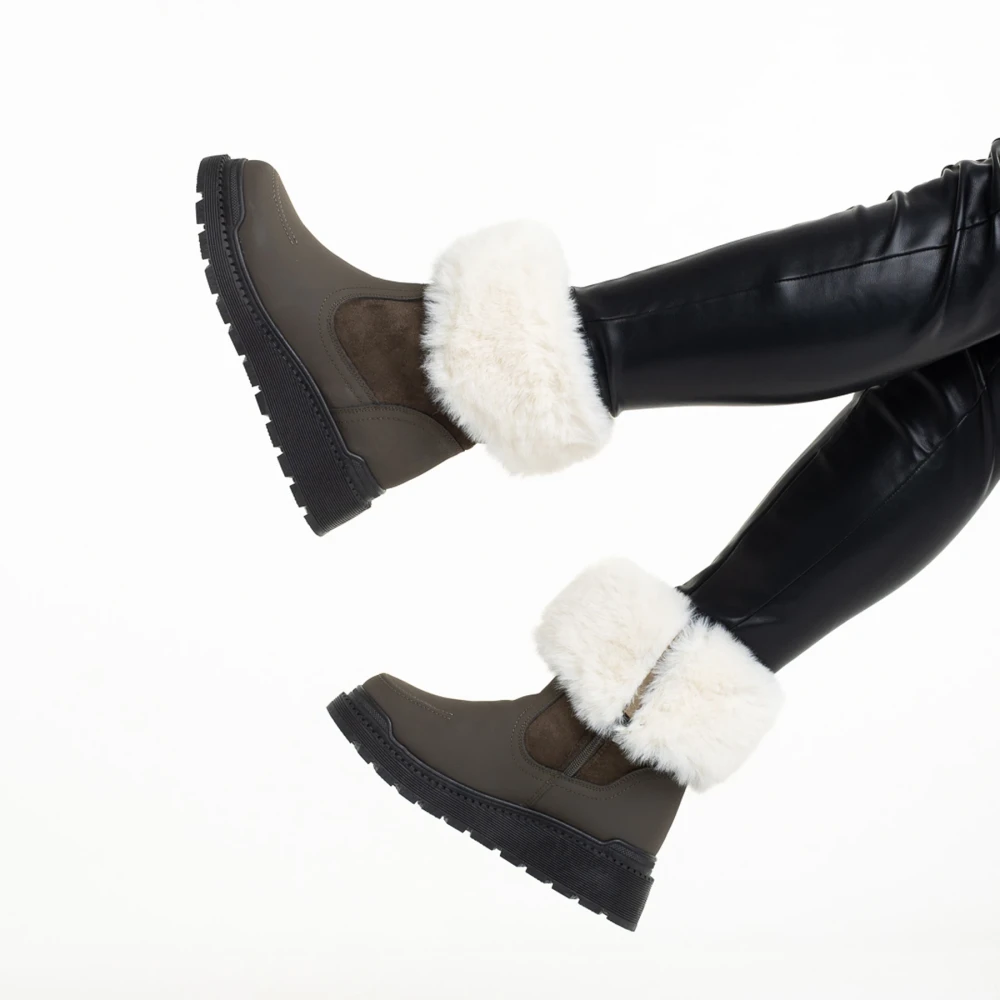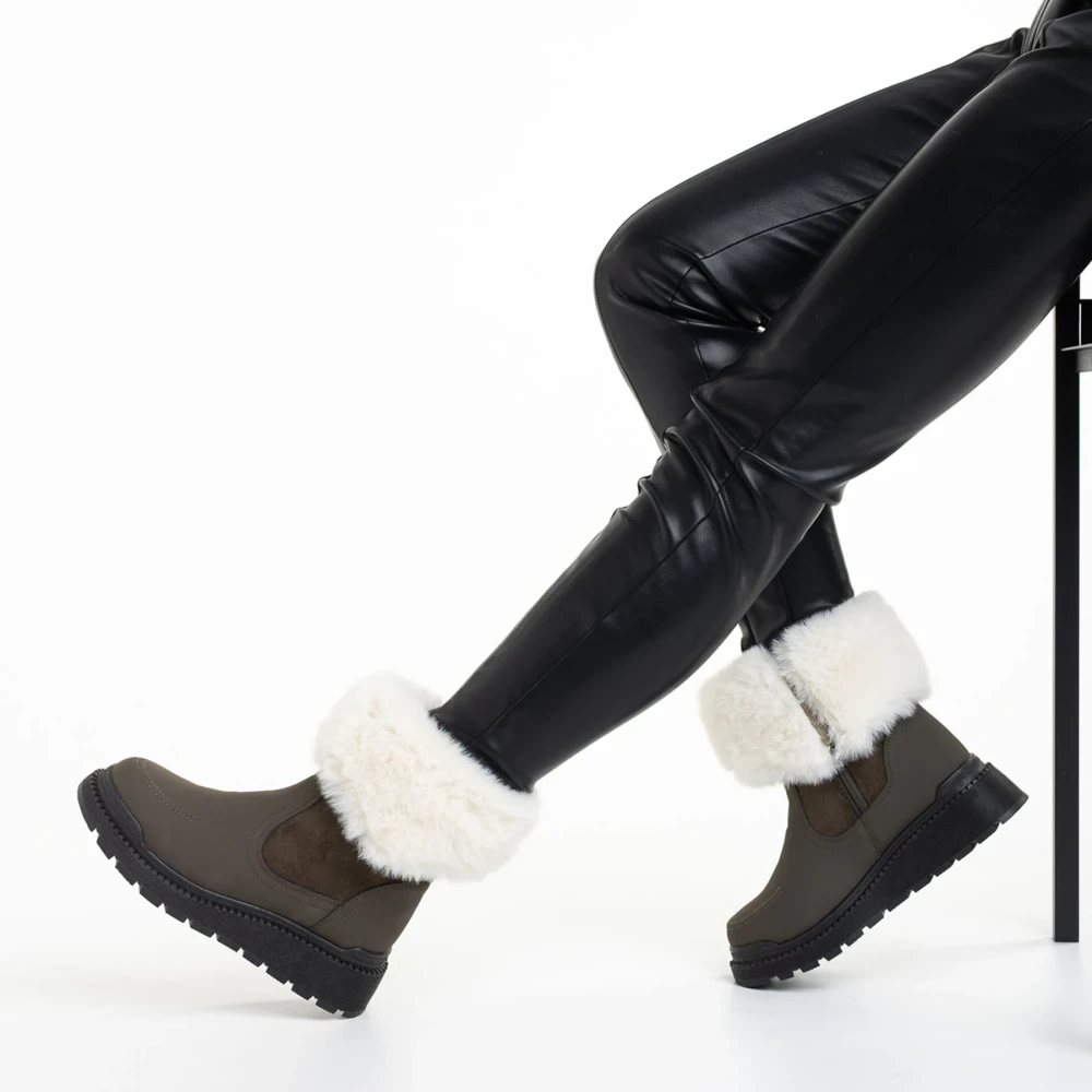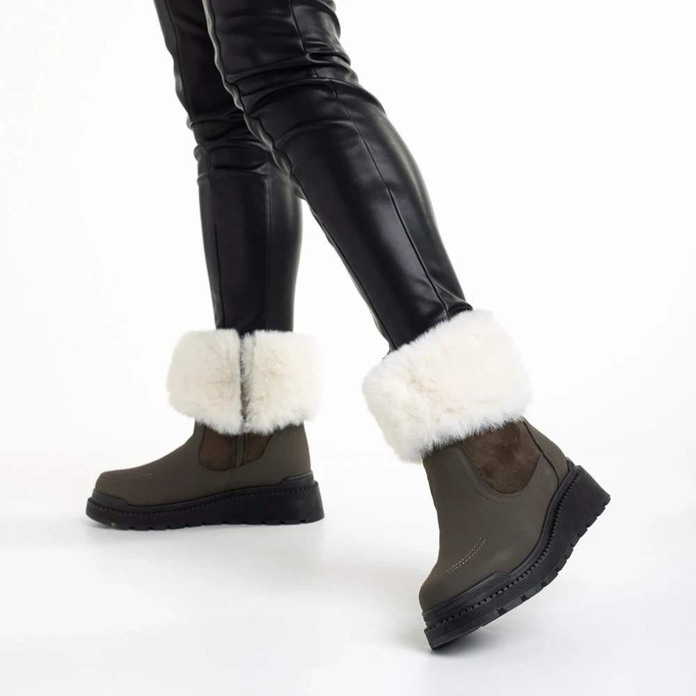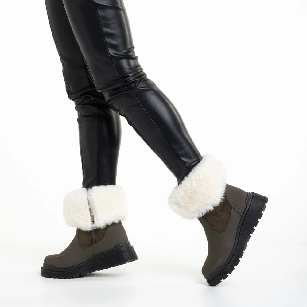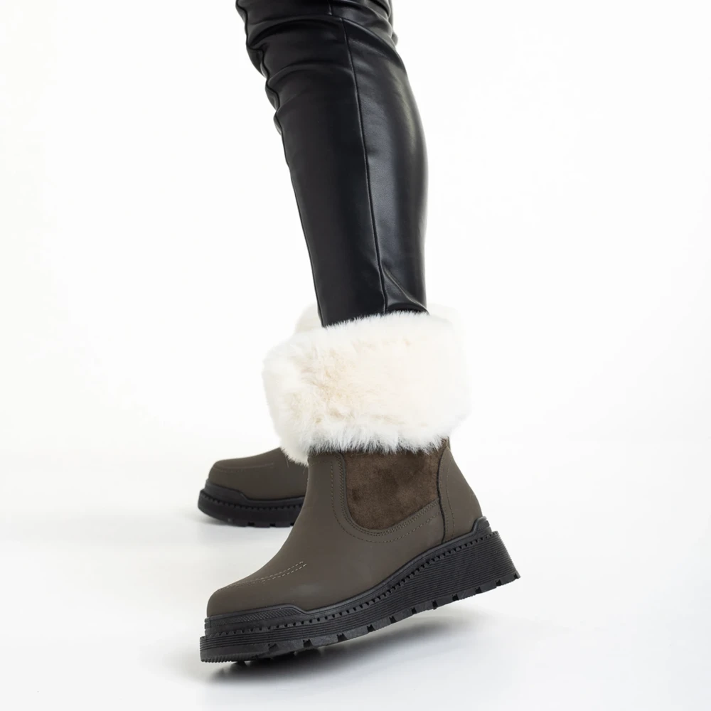 Дамски чизми зелени  от еко кожа и текстилен материал  Aubrielle