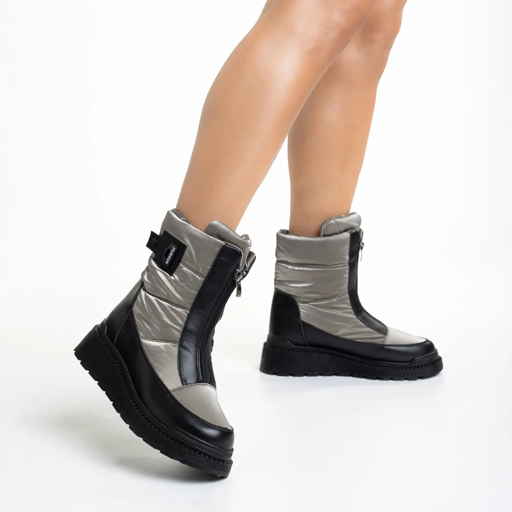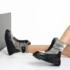 Дамски чизми черни със жълто от еко кожа Verma