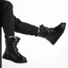 Дамски чизми черни от еко кожа и текстилен материалXiomara