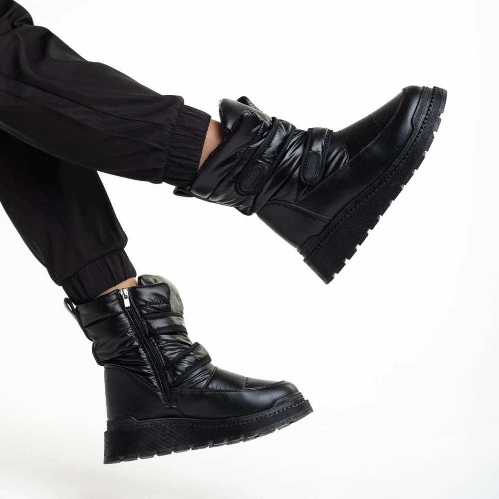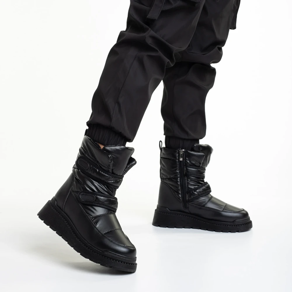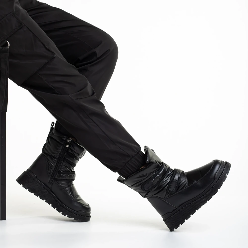 Дамски чизми черни  от еко кожа и текстилен материалXiomara