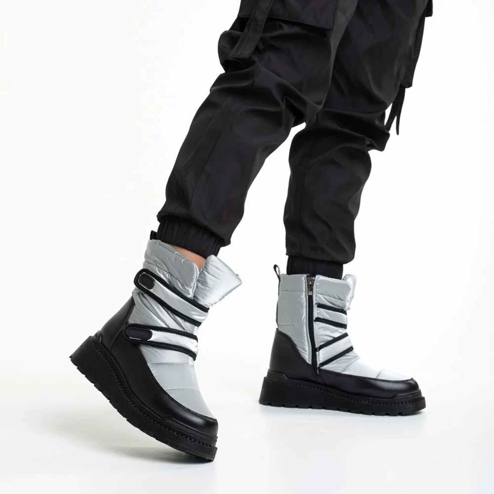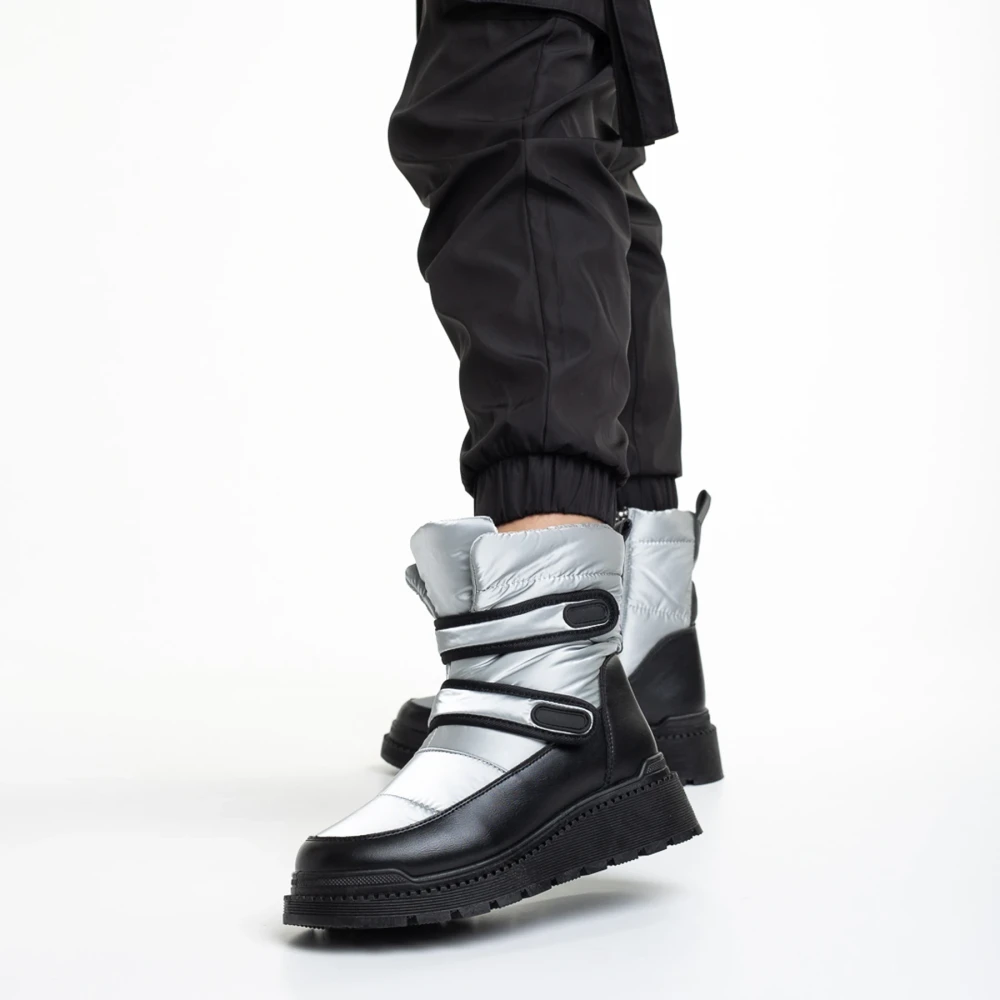 Дамски чизми сиви от еко кожа и текстилен материалXiomara Информация за продукта