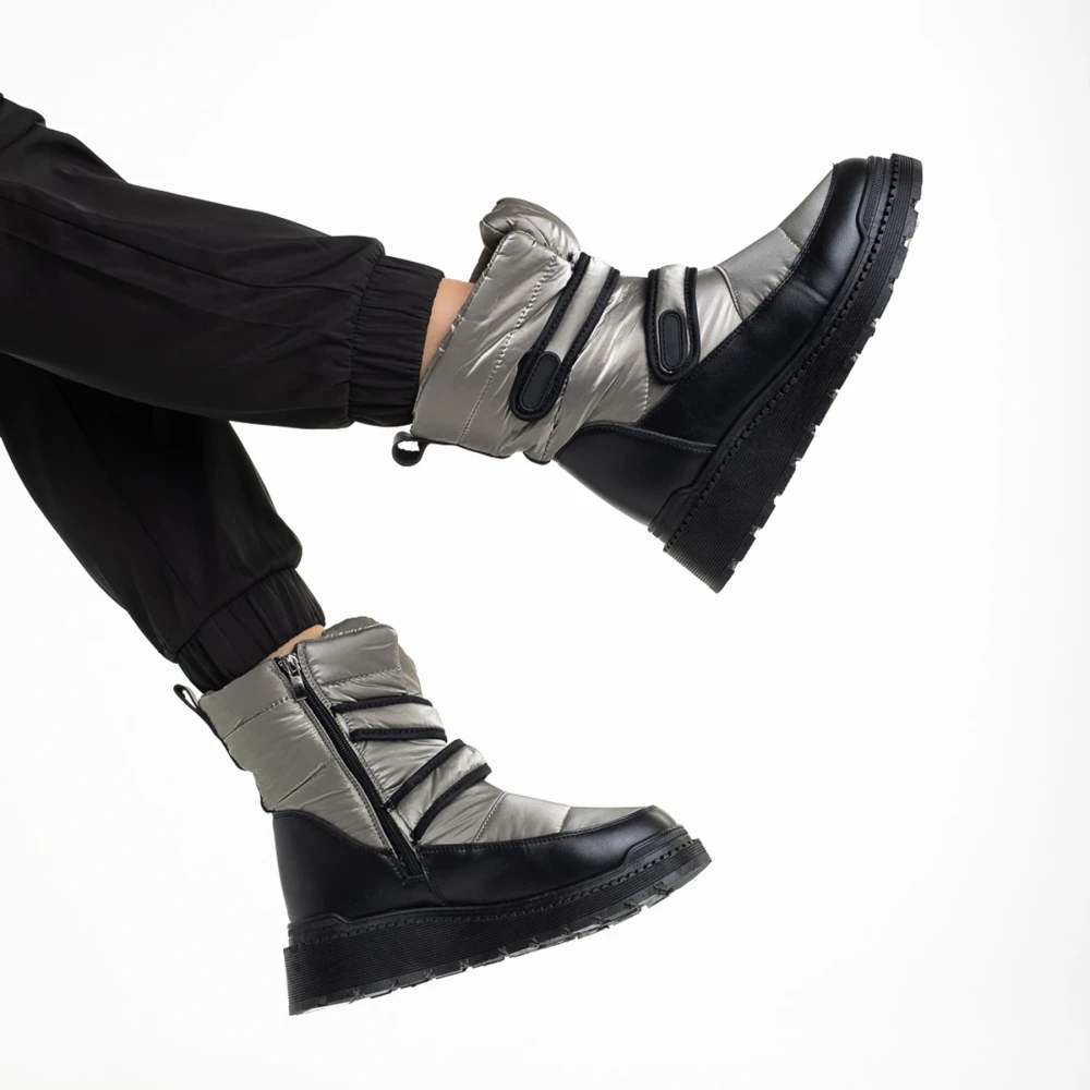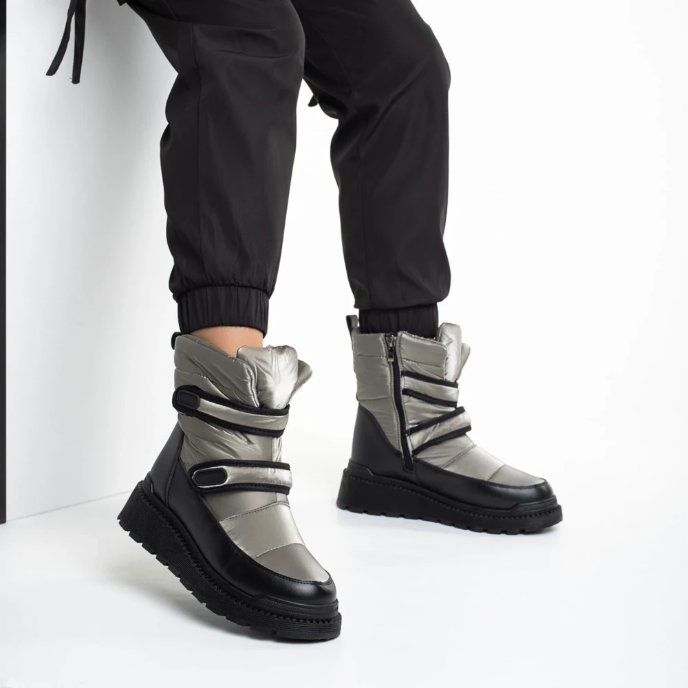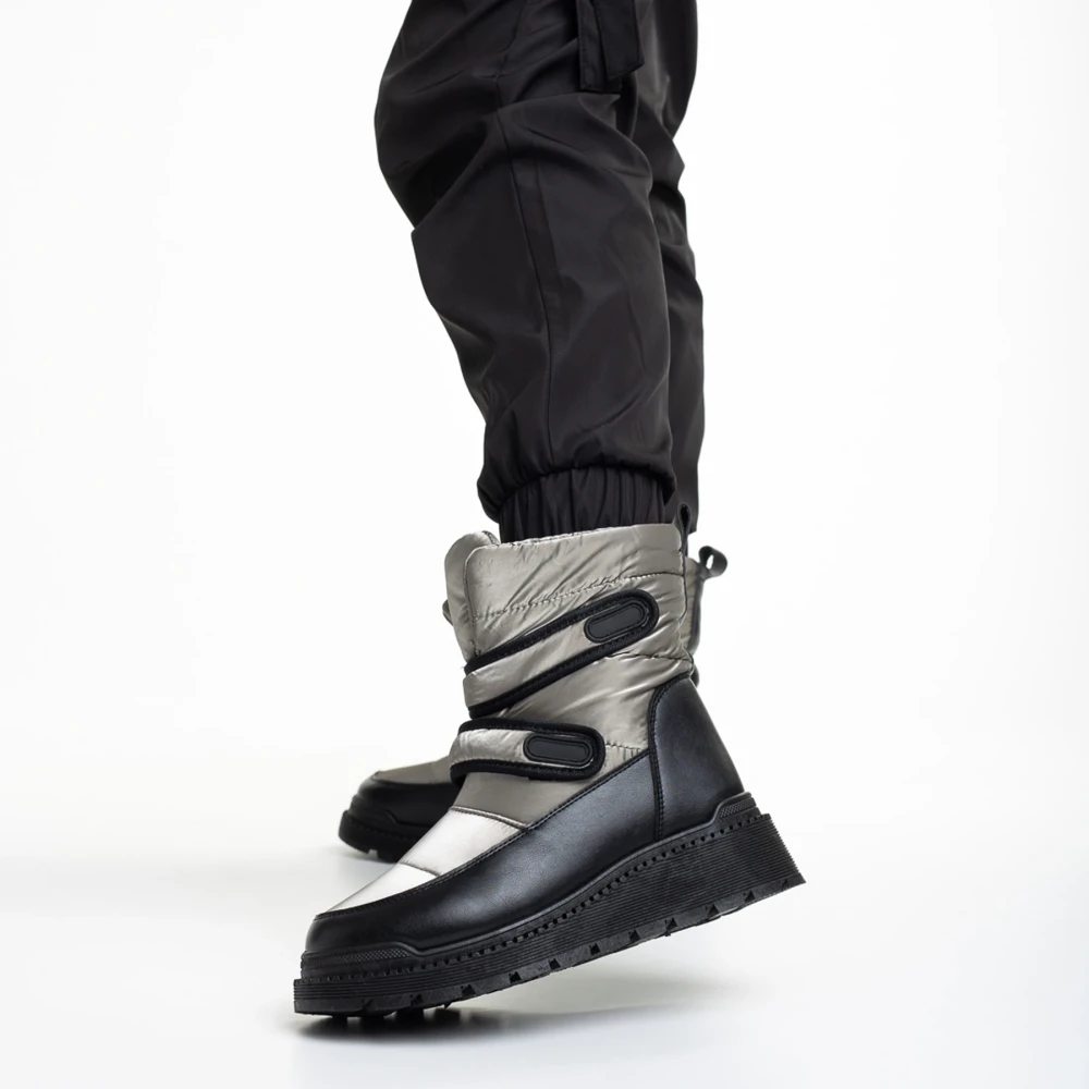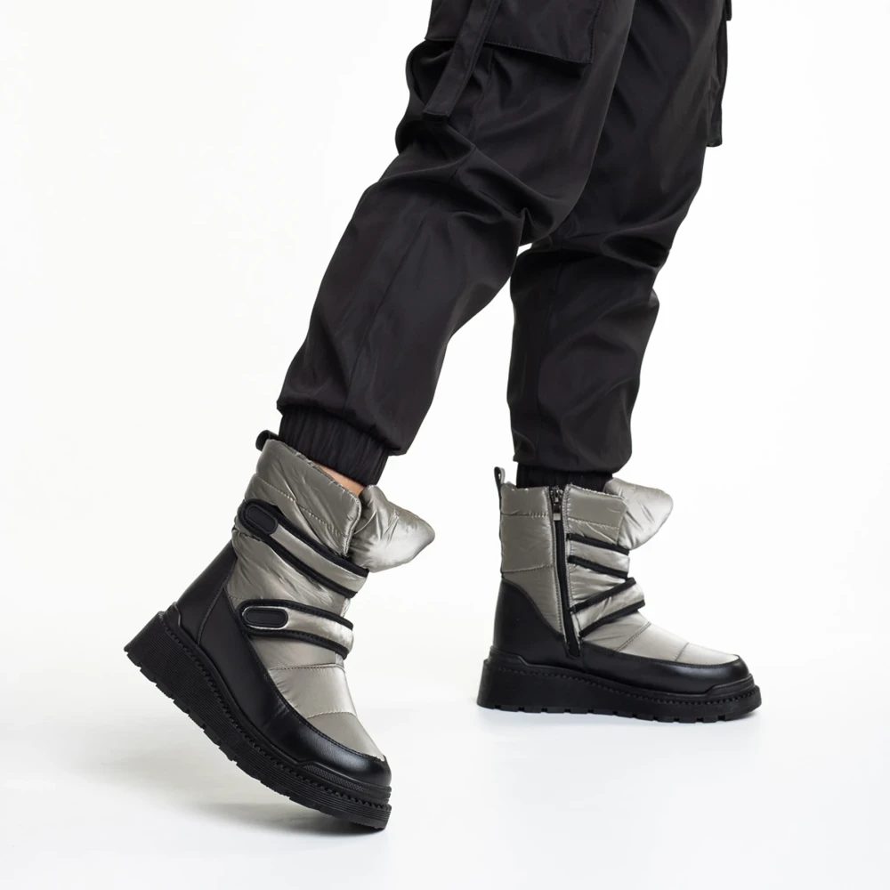Дамски чизми тъмно сиви от еко кожа и текстилен материалXiomara Информация за продукта