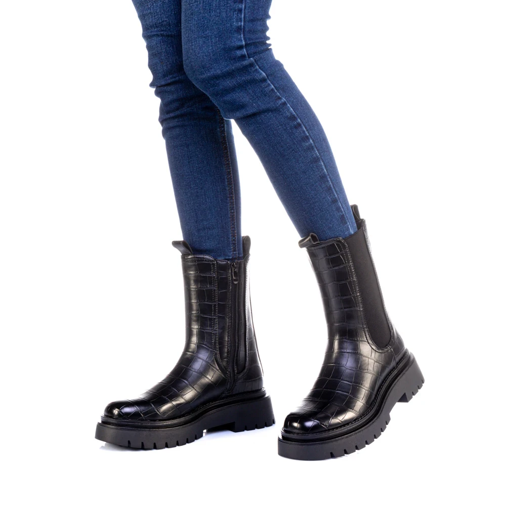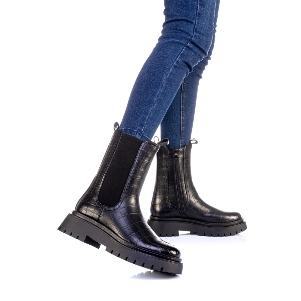 Дамски чизми черни от екологична кожа и текстилен материал Nicova