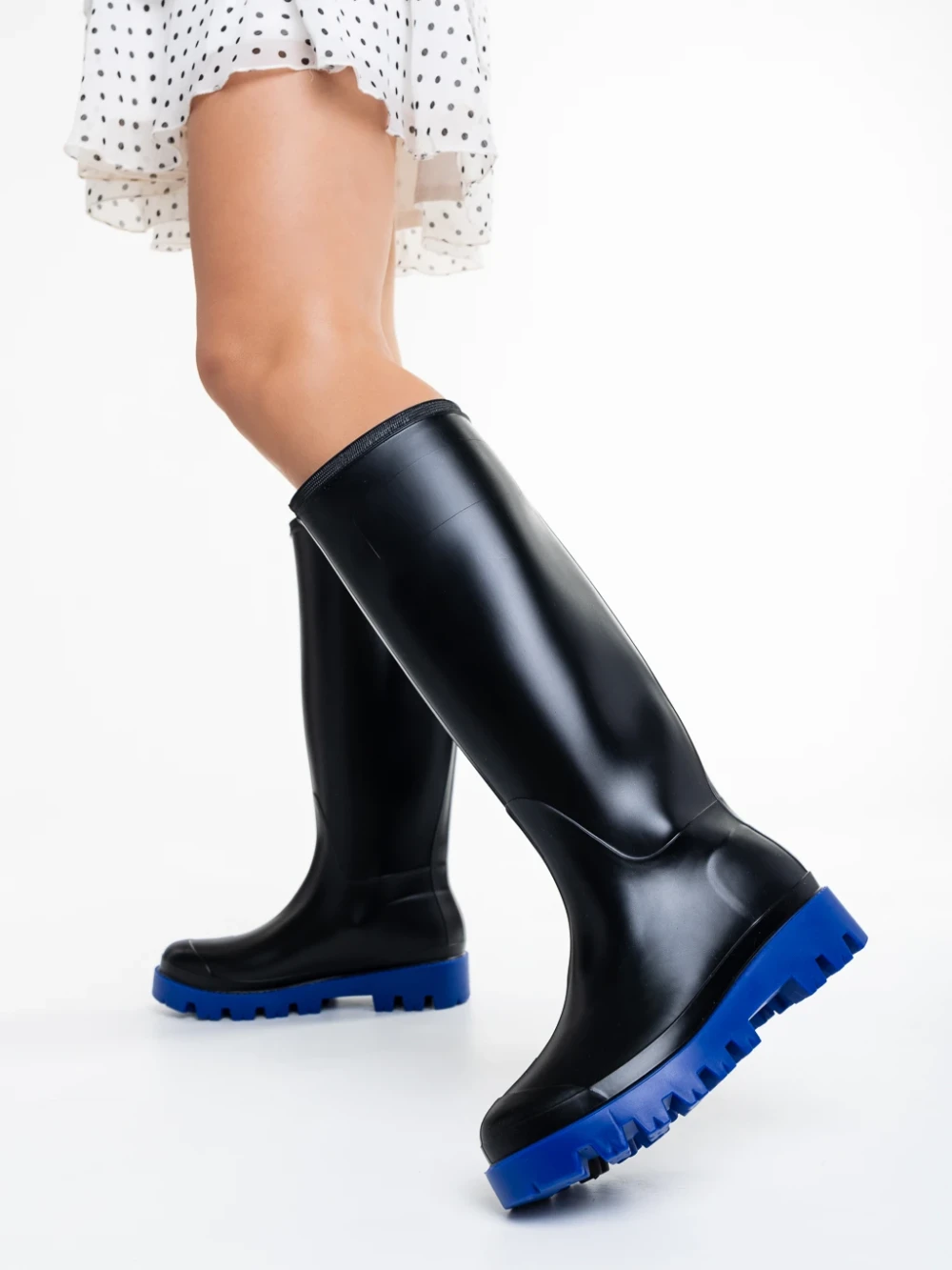 Дамски чизми черни със синьо от каучук Filippa