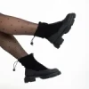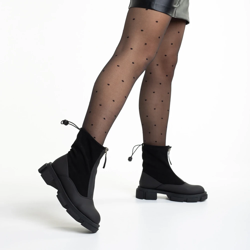 Дамски чизми  черни  от еко кожа и текстилен материал Ramata