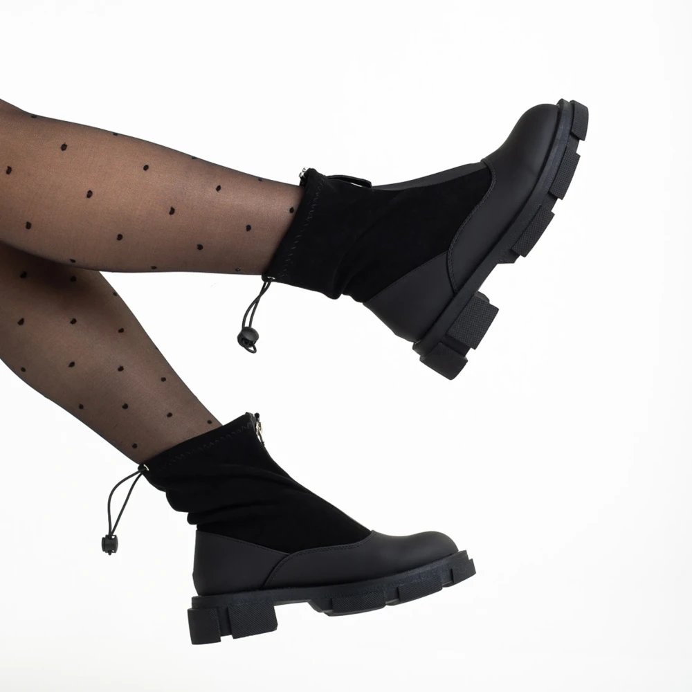 Дамски чизми черни от еко кожа и текстилен материал Ramata