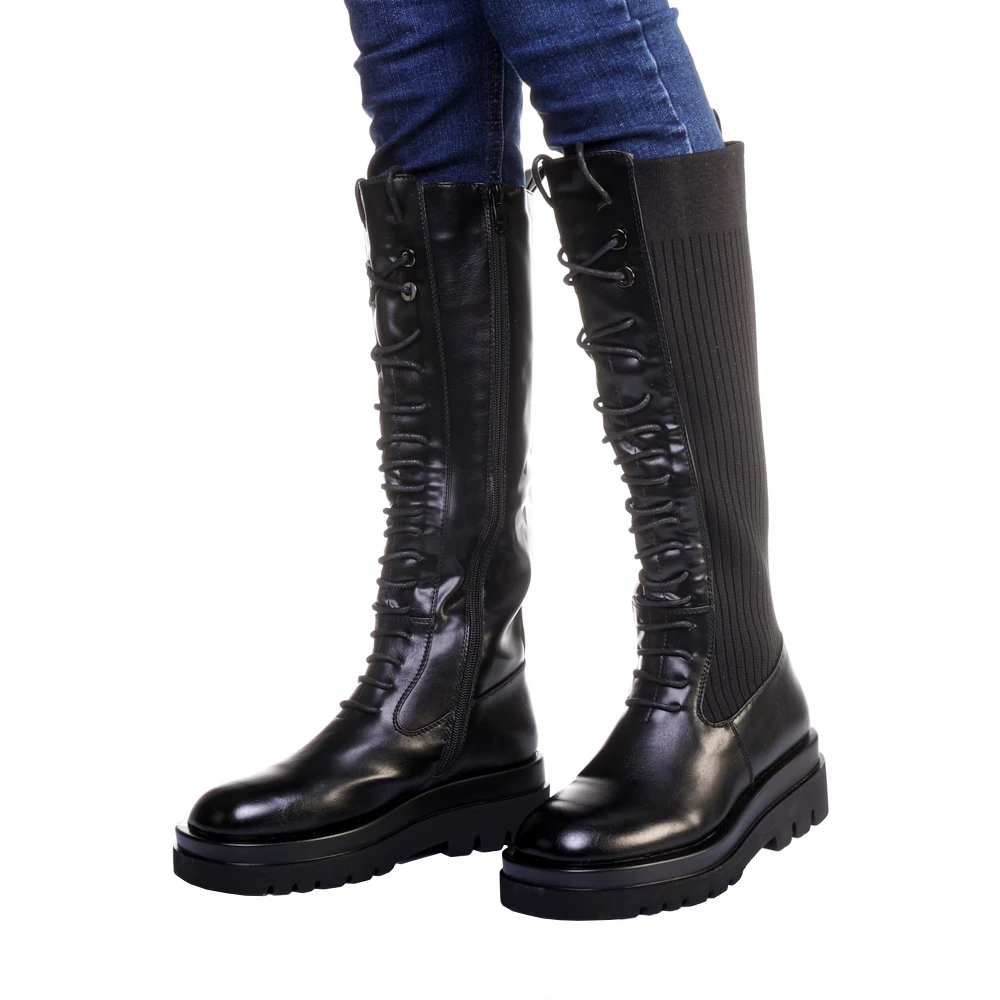 -дамски чизми, изработени от еко кожа и текстилен материал
