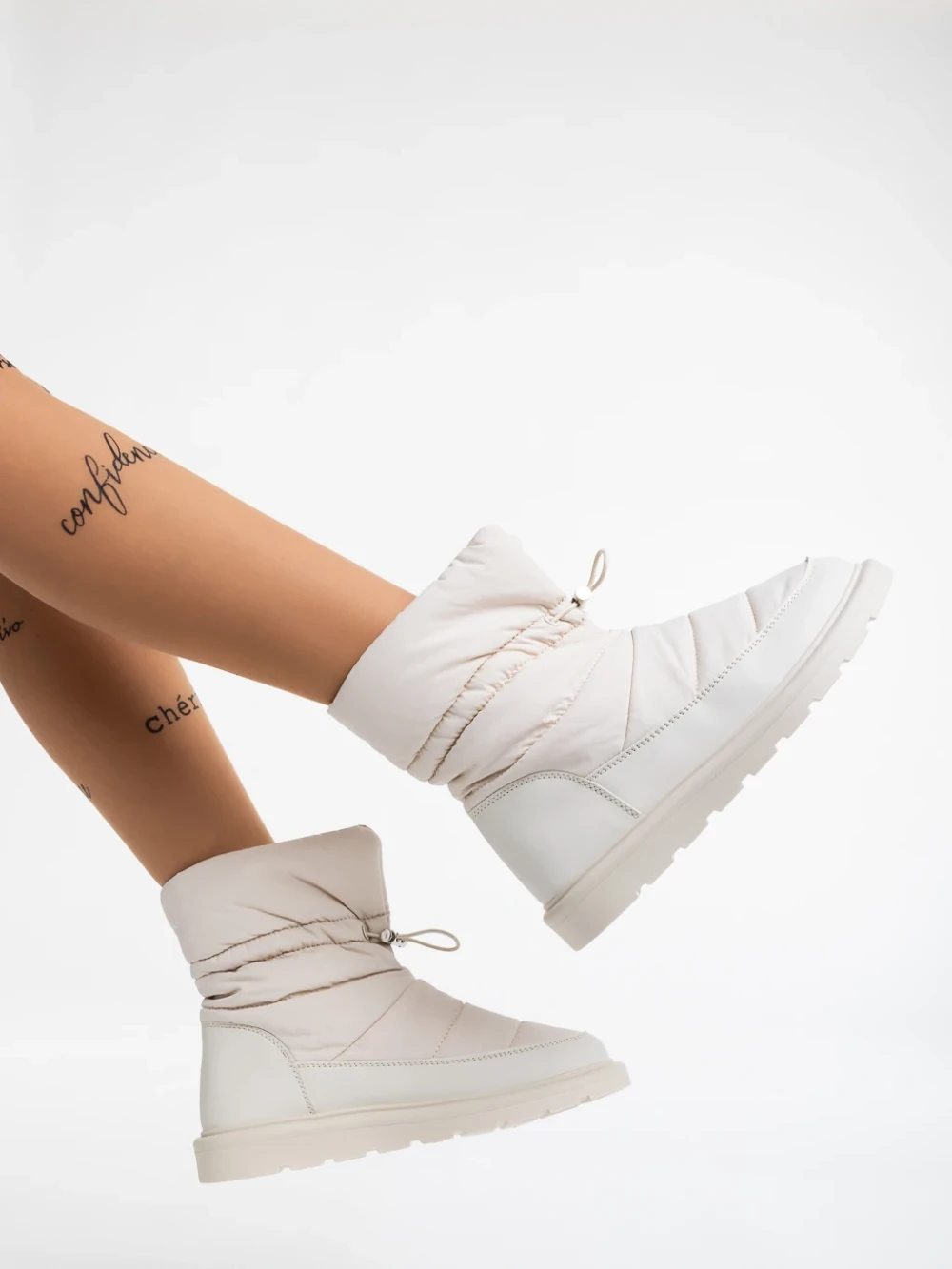 Дамски чизми бежови от еко кожа и текстилен материал Bahar