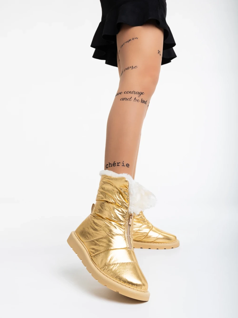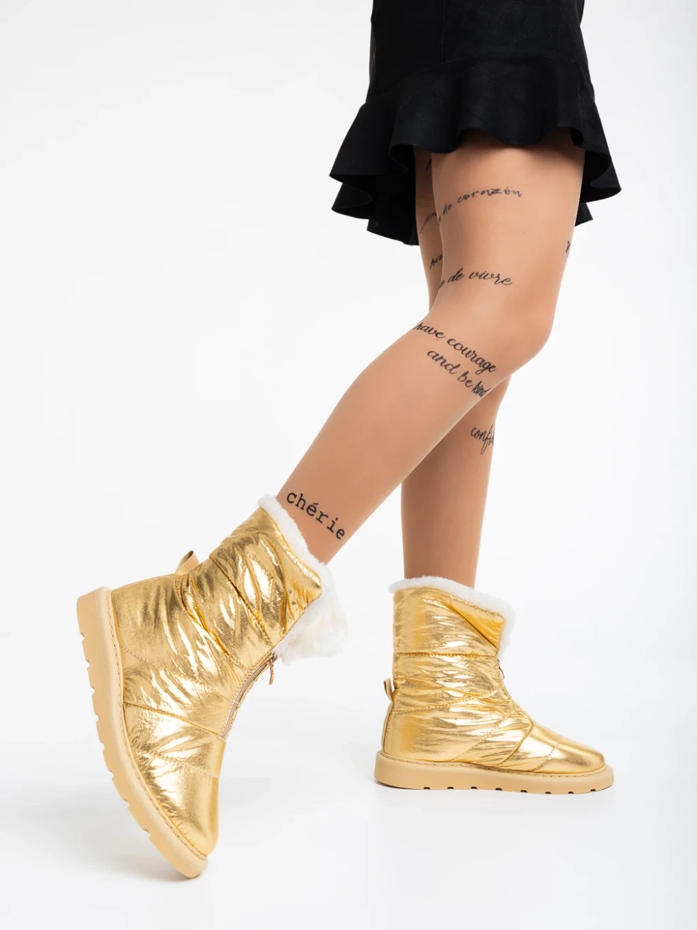 Дамски чизми златисти от текстилен материал Tayte