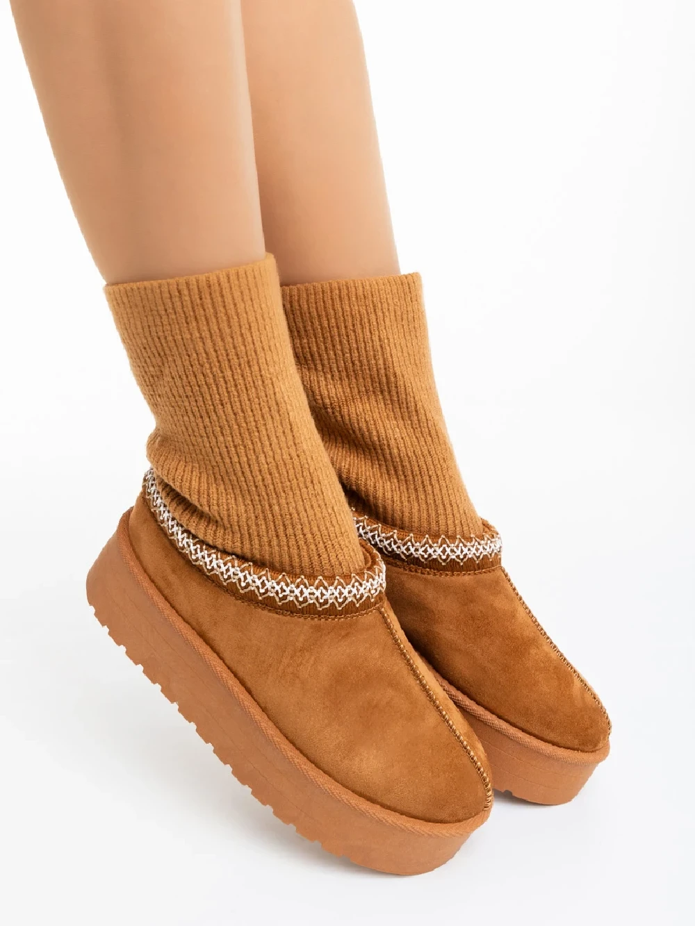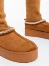 Дамскии чизми тъмно бежови от текстилен материал Zalinda