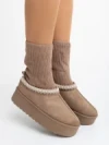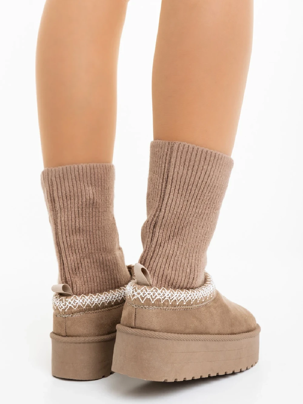 Дамски чизми каки от еко кожа и текстилен материал Janicia
