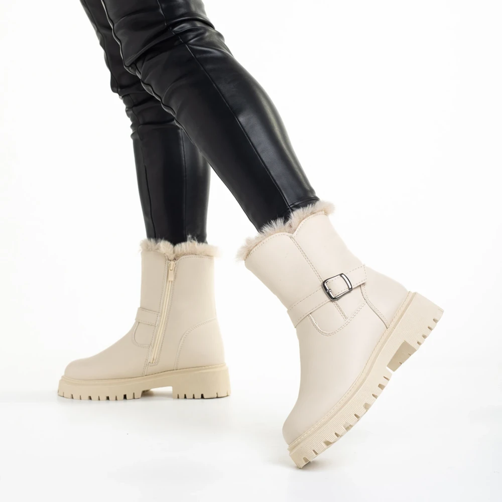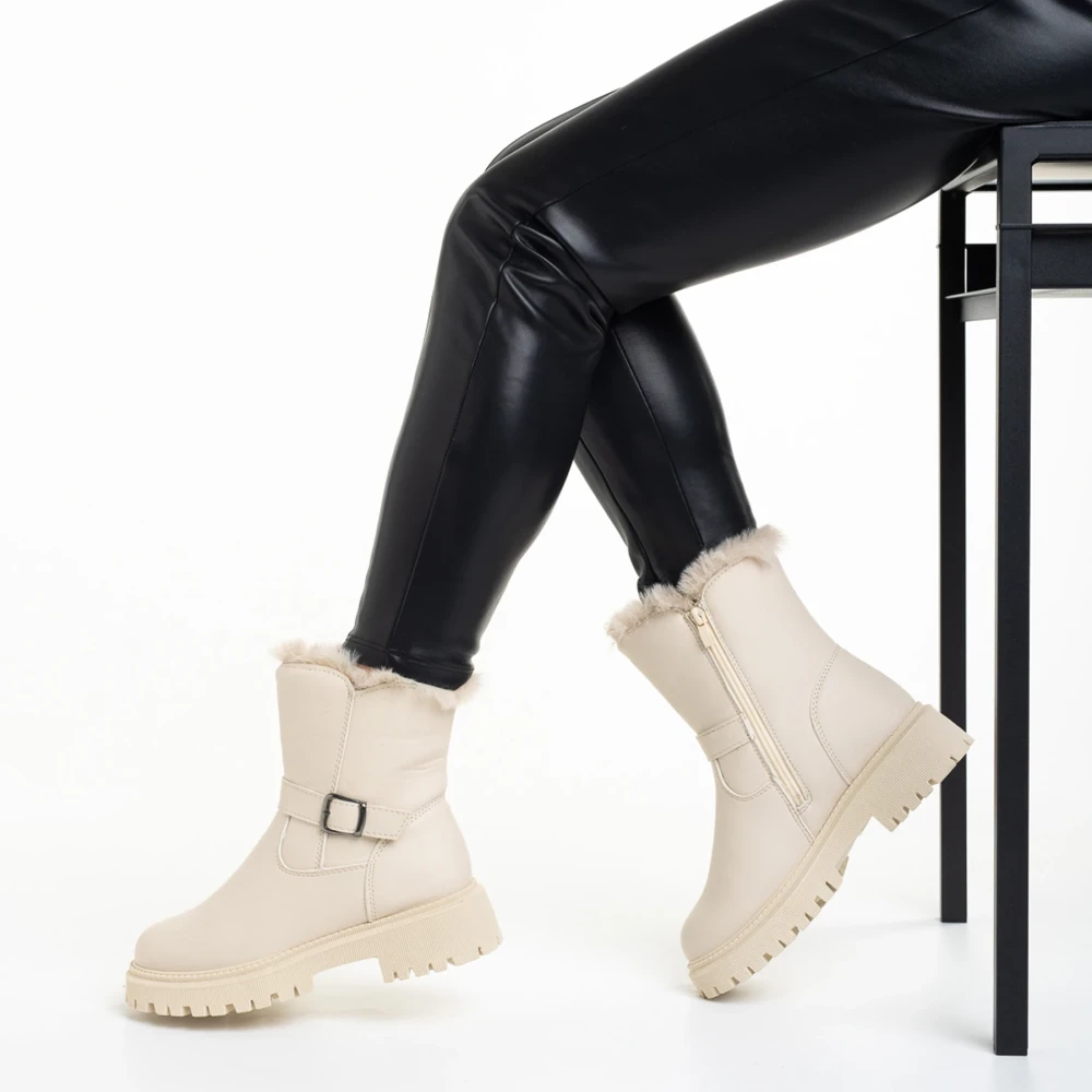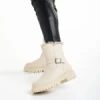 Дамски чизми бежови от текстилен материал Talora