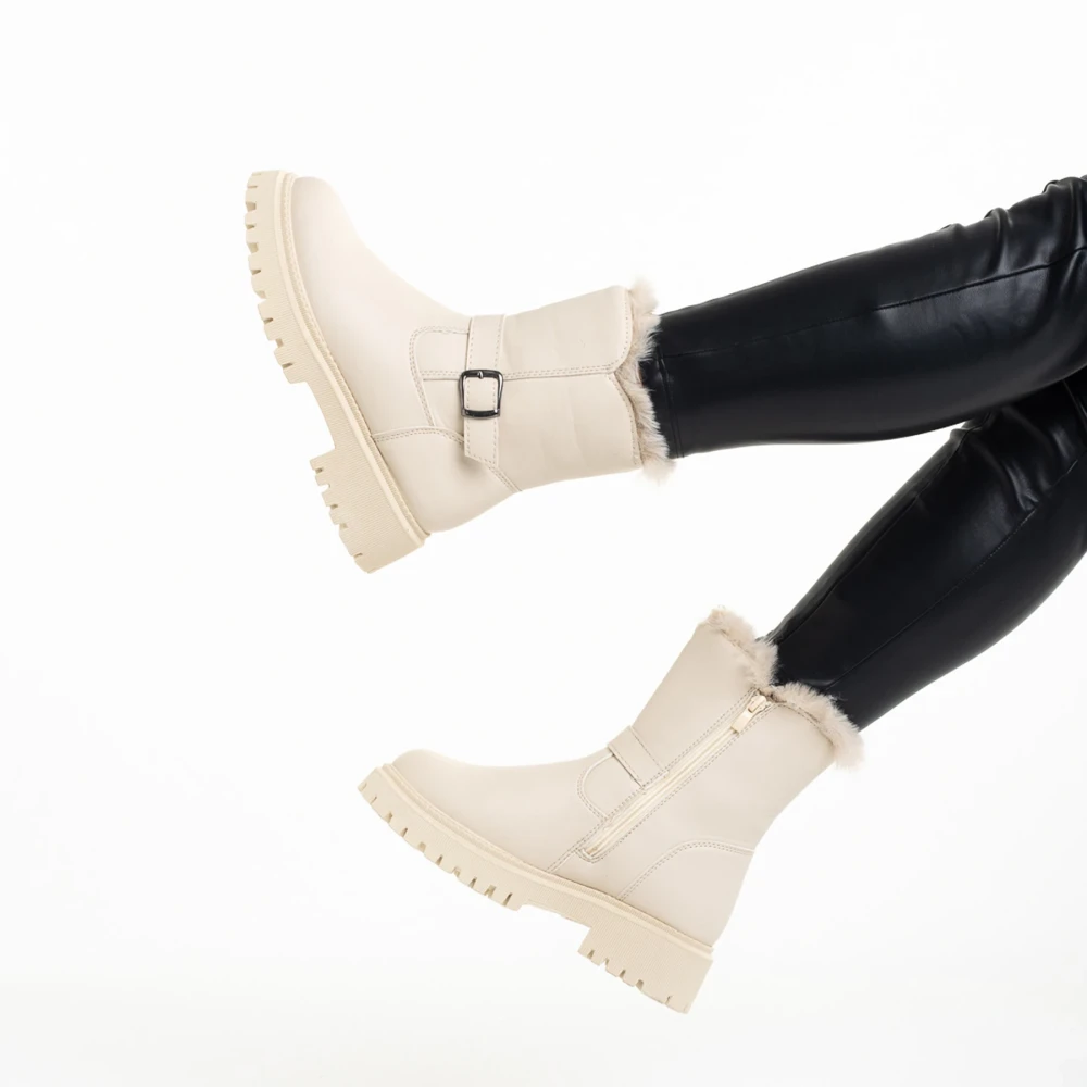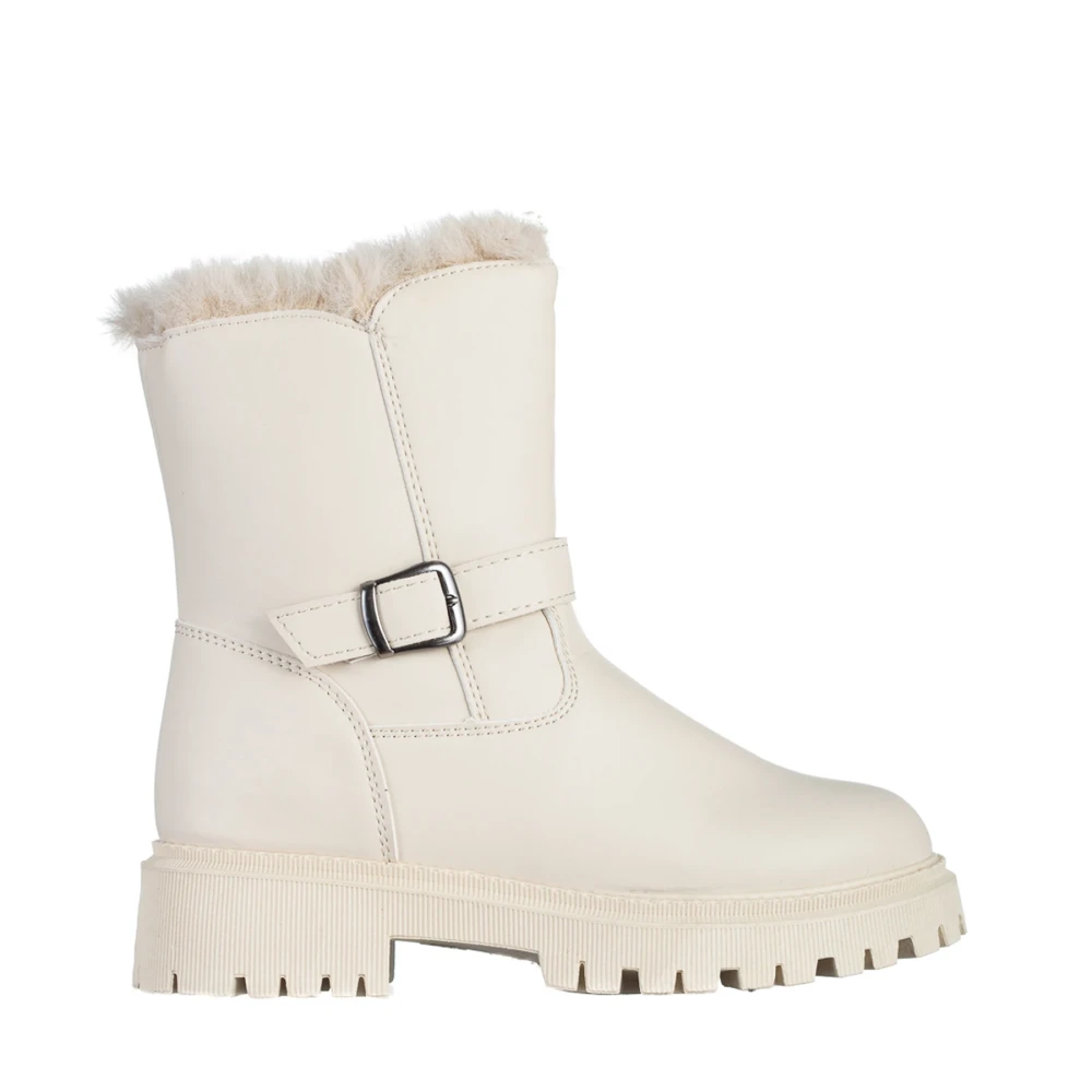 Дамски чизми бели от еко кожа и текстилен материал Leola