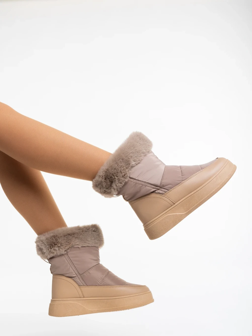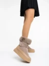 Дамски чизми бежови от текстилен материал Anselma