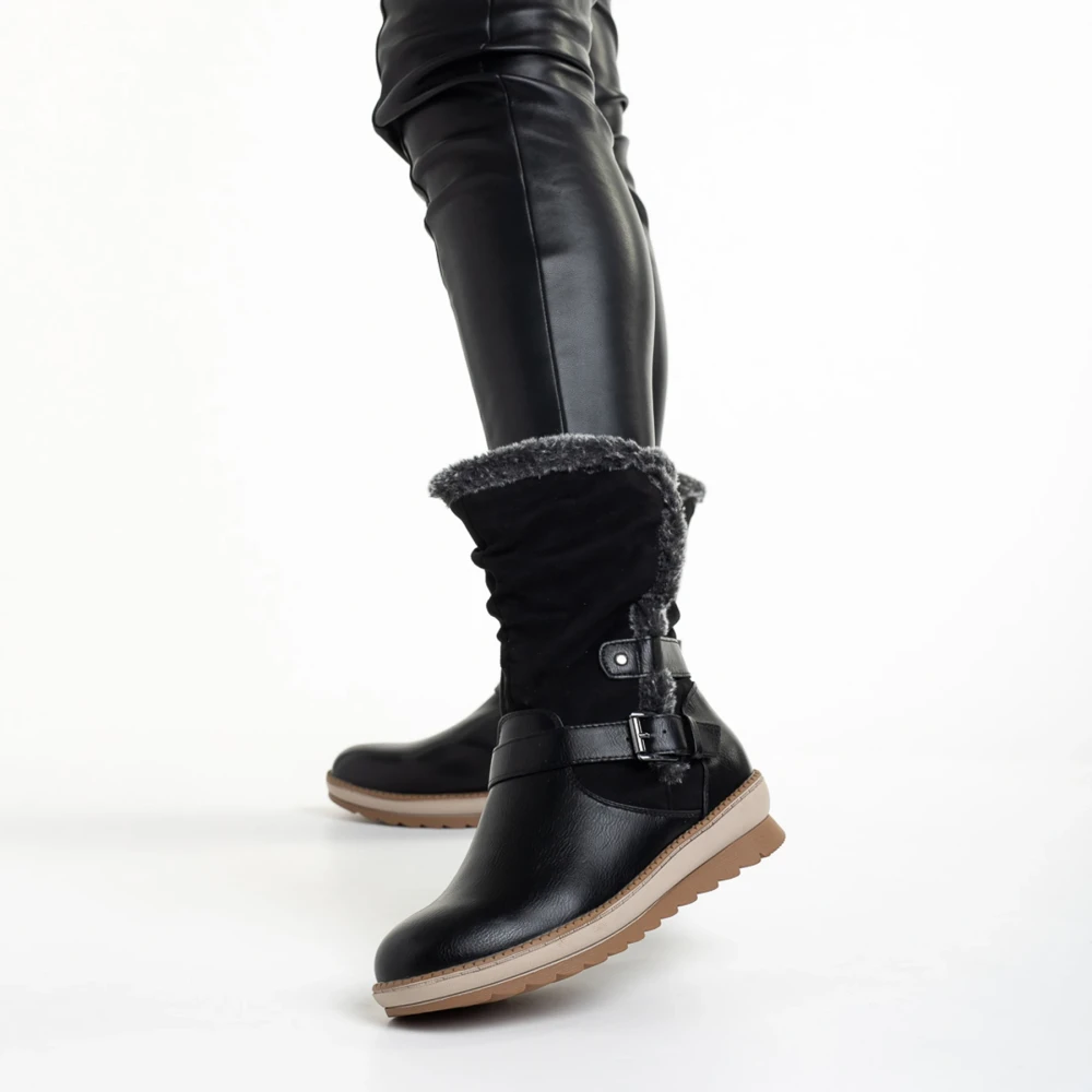 Дамски чизми  черни  от еко кожа и текстилен материал  Collete