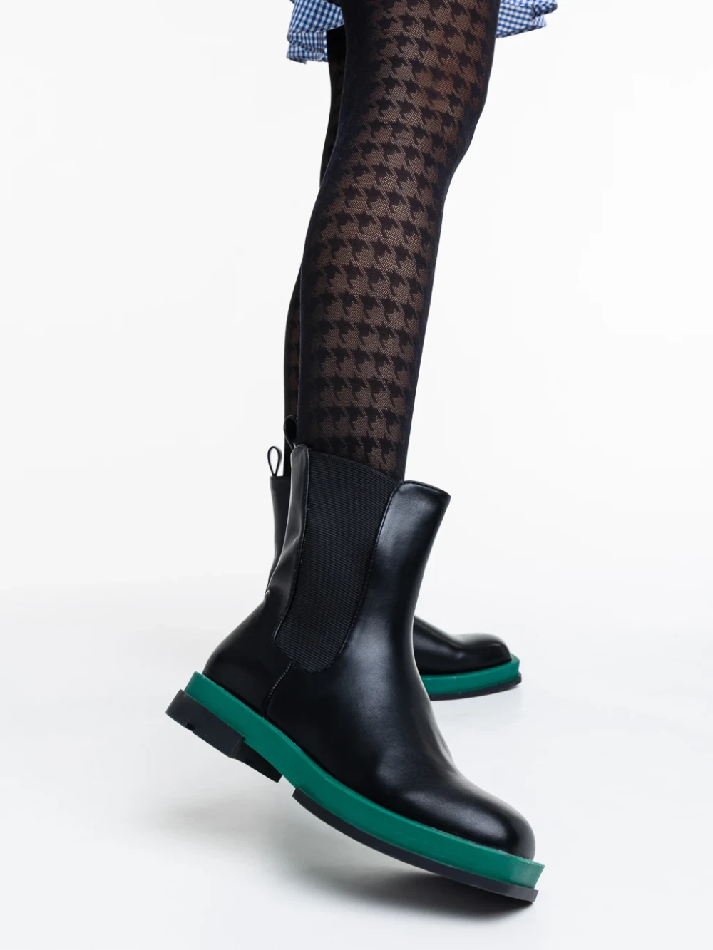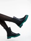 Дамски чизми черни със зелено от еко кожа Omolara