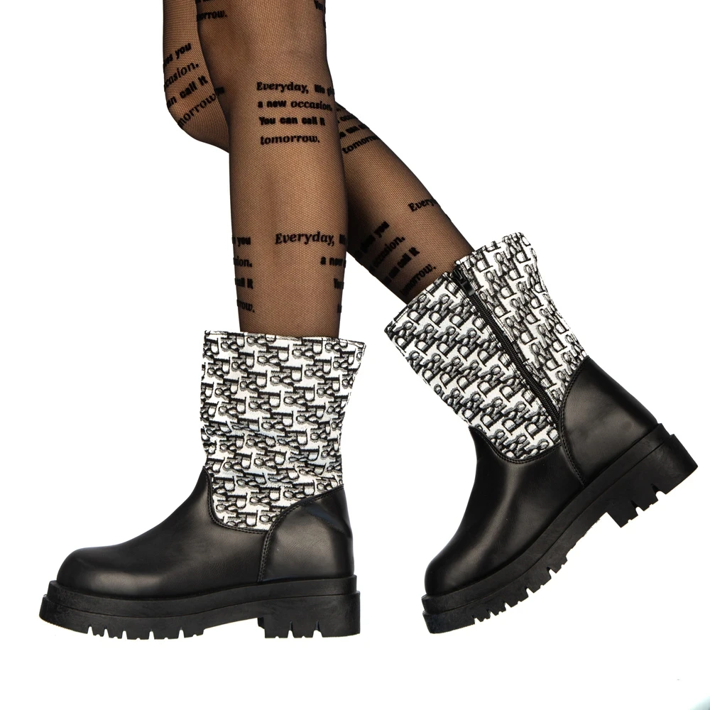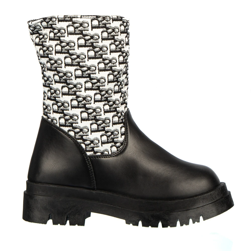 Дамски чизми черни от еко кожа и текстилен материал Sutton