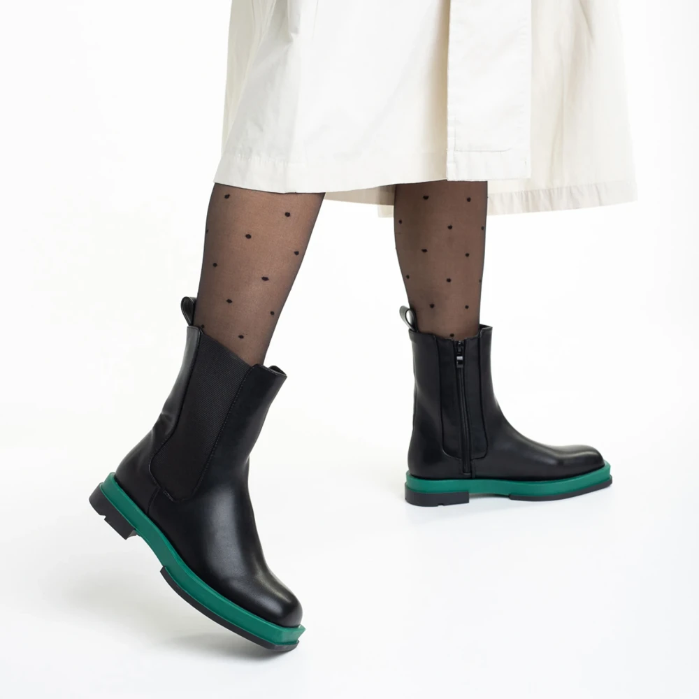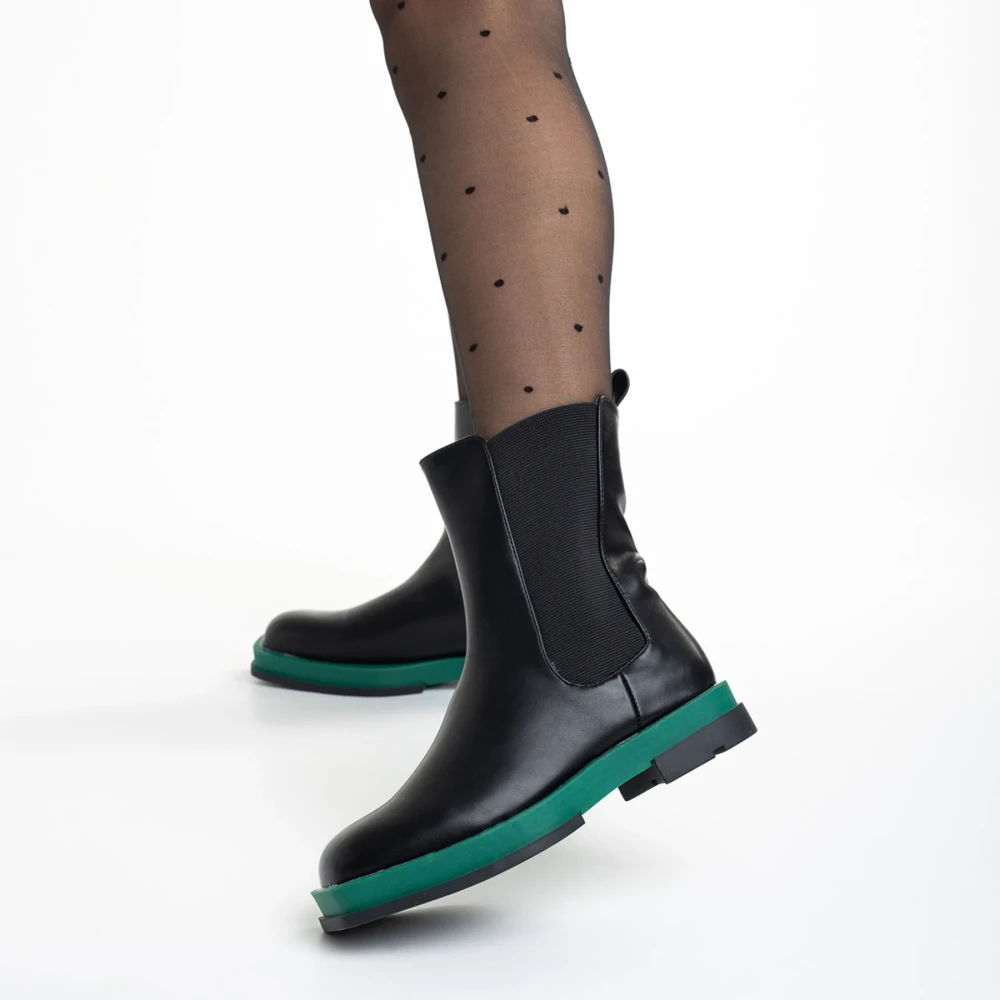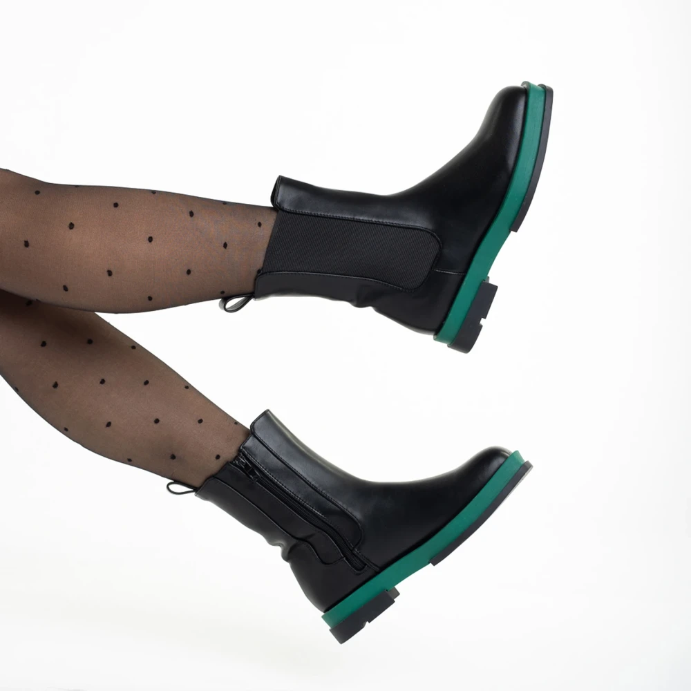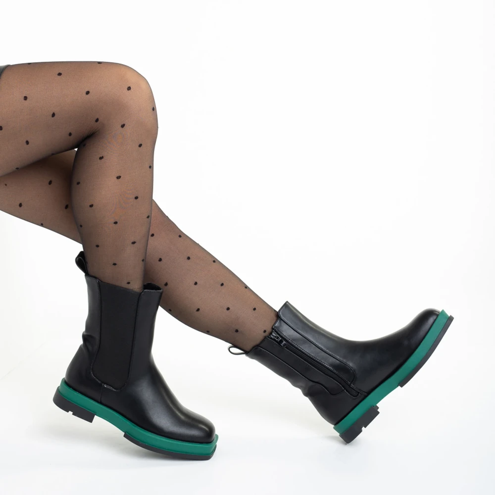 Дамски чизми  черни  със зелено от еко кожа  Verma