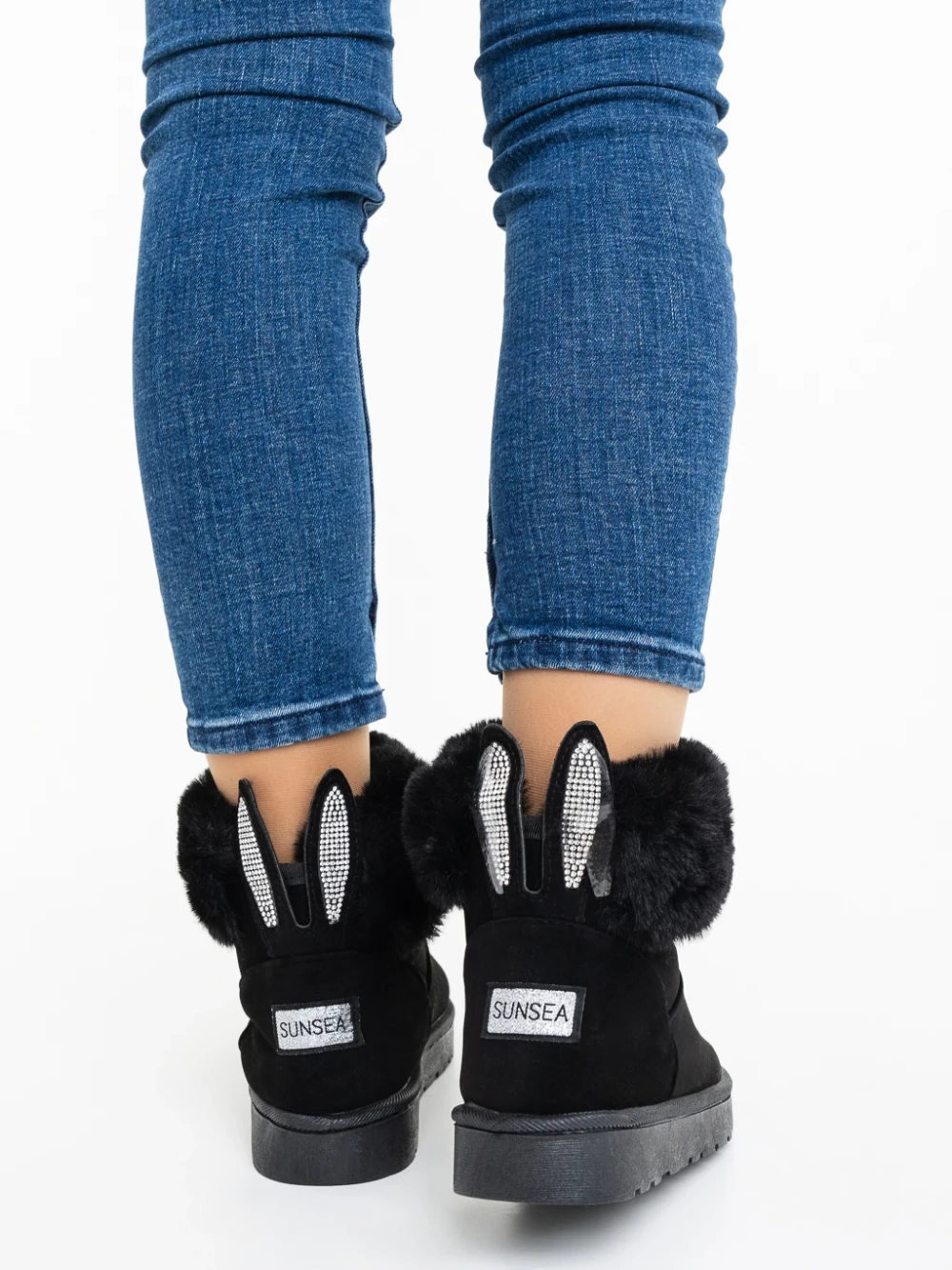 Дамски чизми черни от текстилен материал Ezera