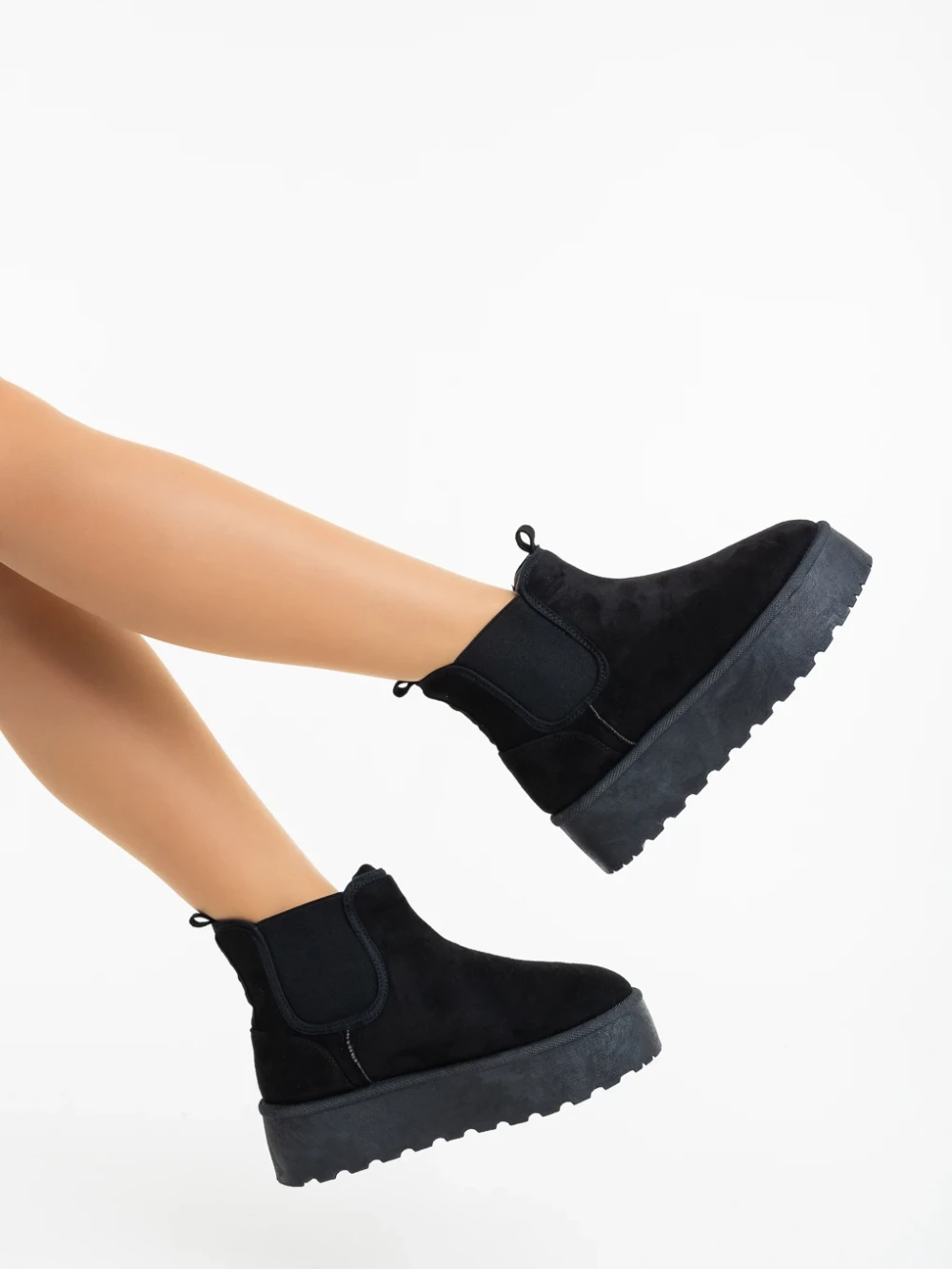 Дамски чизми черни от еко кожа и текстилен материал Ramata