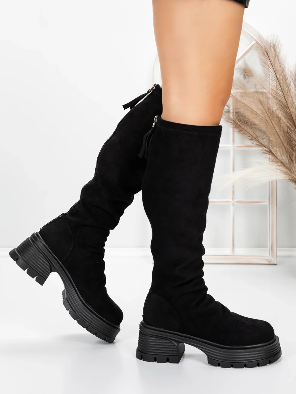 Дълги ботуши с ток и платформа